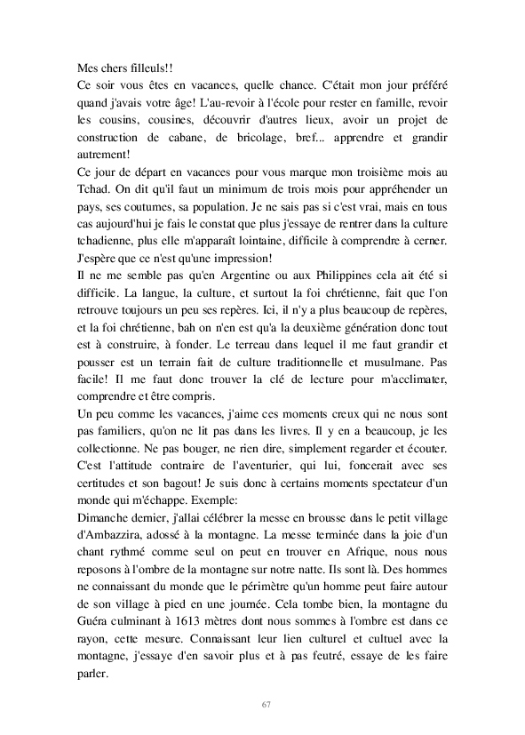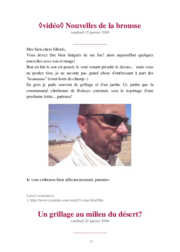 Ces lettres écrites "sur le vif" pour un blog, n'ont pas été relues avant impression. L'auteur s'excuse par avance pour les fautes et les coquilles qui ne manqueront pas de rendre le récit plus réaliste :-) !