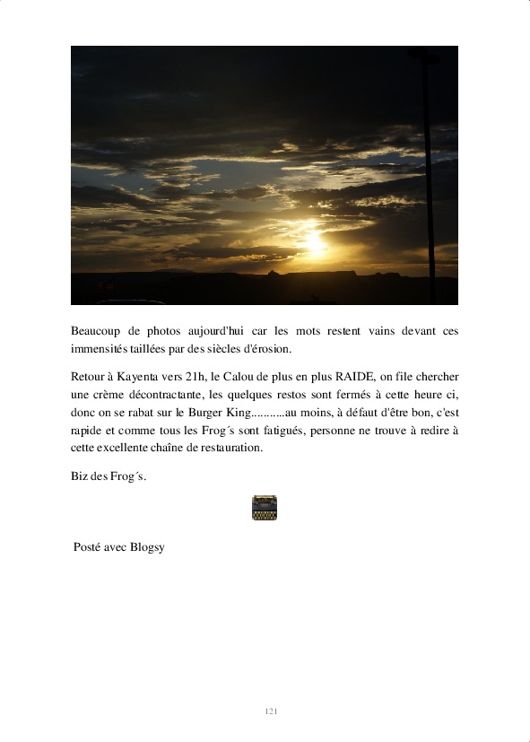 Beaucoup d'heures de vol, beaucoup de Km en 4x4, beaucoup de Burgers, beaucoup de marche à pied, beaucoup de photos.............mais que c'était bien !!!