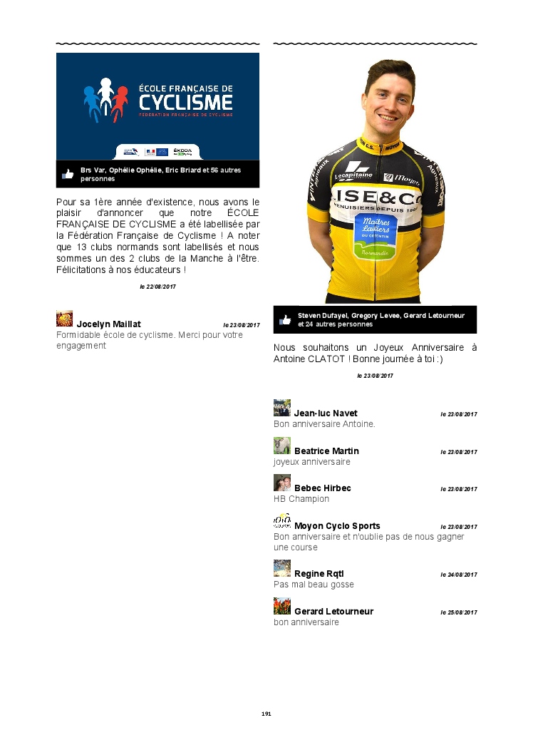Du lancement de l'école française de cyclisme à la Gentlemen d'octobre en passant par les randonnées, l'inter-régions cadets et les différentes épreuves auxquelles ont participé nos coureurs pendant toute cette saison ce sont plus de 250 pages de photos, commentaires et publications qui composent ce livre.