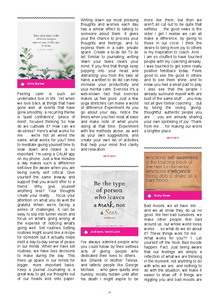 It’s wonderful to connect with you and to share a simple but profound knowledge that has already transformed my life and those of my clients.