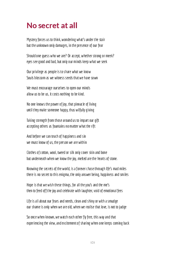 The questions you have may find there answers here, maybe not. A thought that can be a tangle of spaghetti can easily unravel on a page. It can be embarrassing or a relief. It can be frightening or a joy. Whatever your spaghetti is you may relate to something here, more than likely in fact.