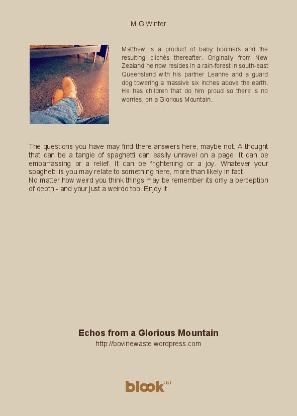 M.G.Winter made the blook of their their blog Wordpress ! Support their creativity by buying their blook or create your own now on BlookUp!