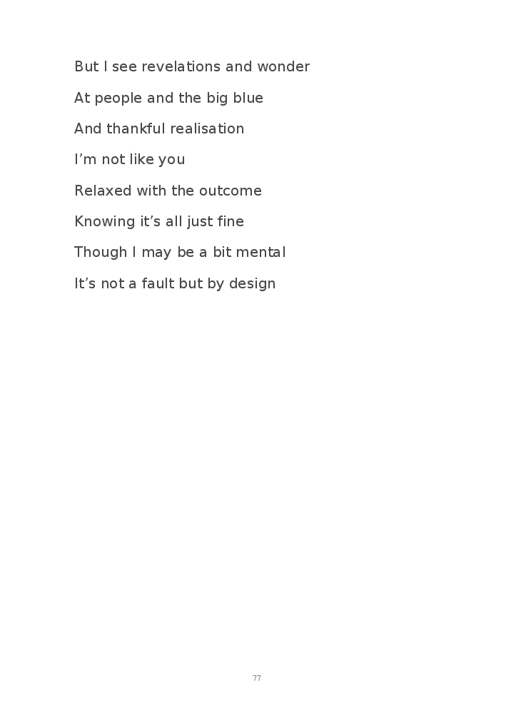 No matter how weird you think things may be or how lost you may seem, remember its only a perception of depth - steal the words that make you feel, steal them to make some sense.