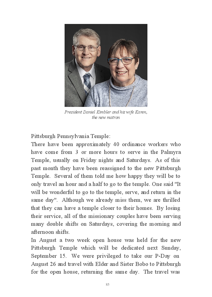 The primary focus of this blook is our Palmyra New York Temp[le Mission. Before we left. we celebrated the marriage of our son Jacob and his new bride Deborah Beutler who also stayed in our condo while we were in NY. We attended he funeral of our son-in-law, James DeVore, in Pennsylvania on March 30 and arrived in Palmyra the next day. Our time in Palmyra was full of spiritual experiences in the temple, in the Penn Yan branch, and in the land of the restoration. We also had a memorable teenage grandchildren retreat in July, sharing all of these experiences.. The Lord has certainly blessed us on this mission! After returning home, we were called as Church Service missionaries, teaching Institute for Pathway.students.