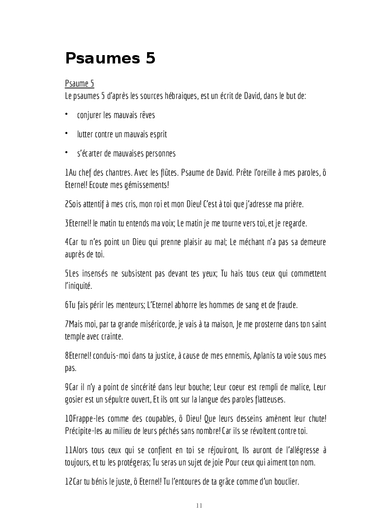 Psaumes et formules biblique et mode d'emploi.