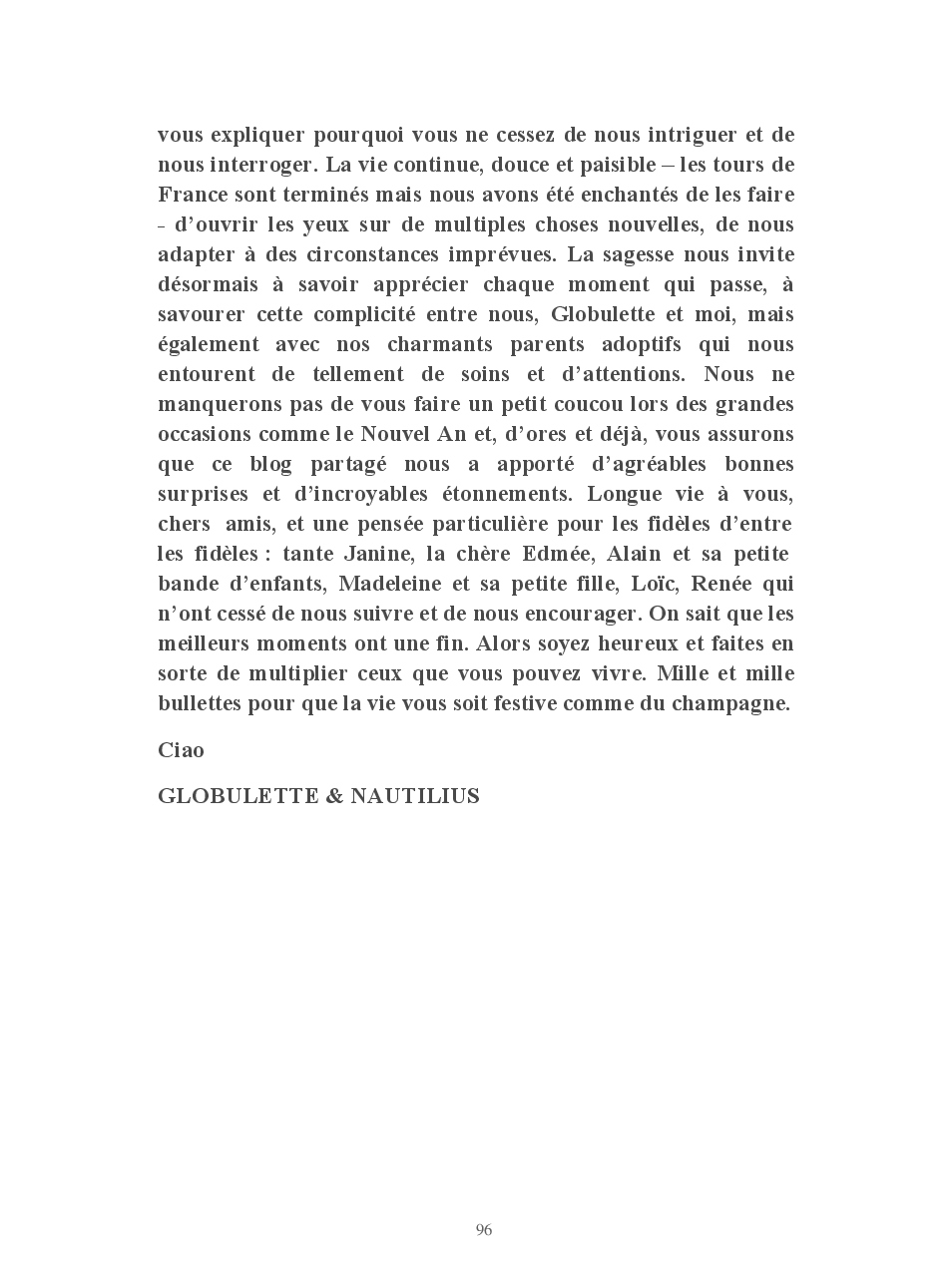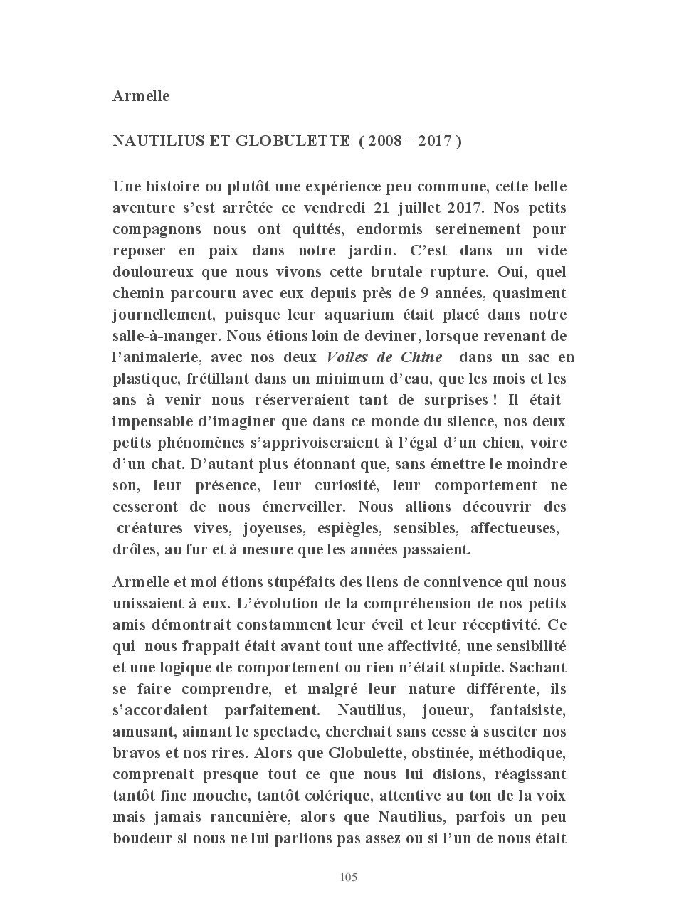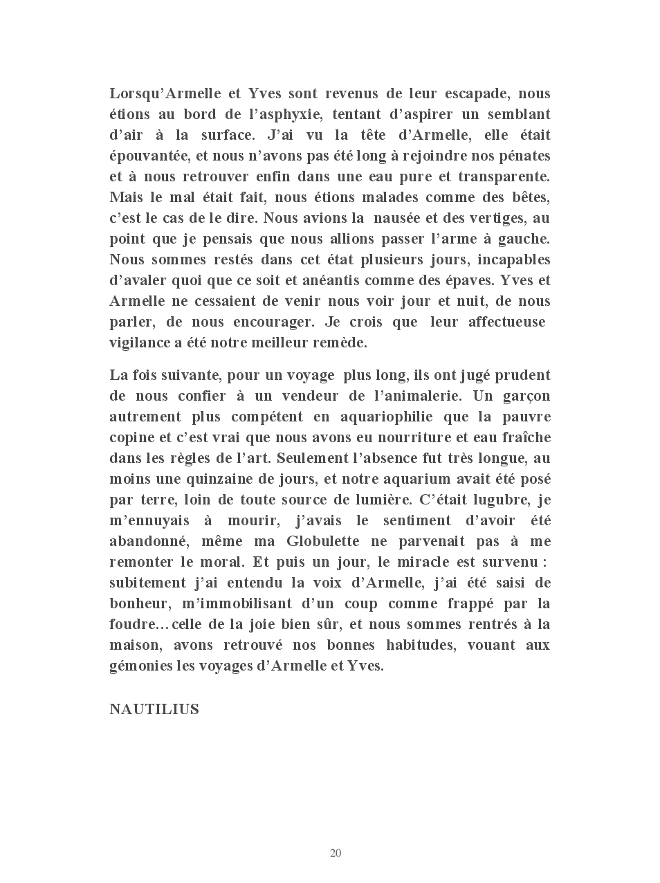 Cet ouvrage vous conte la vie de Globulette et Nautilius qui ont eu le souci de ne manquer aucun événement important de ces presque neuf années de vie partagées avec Yves et Armelle.