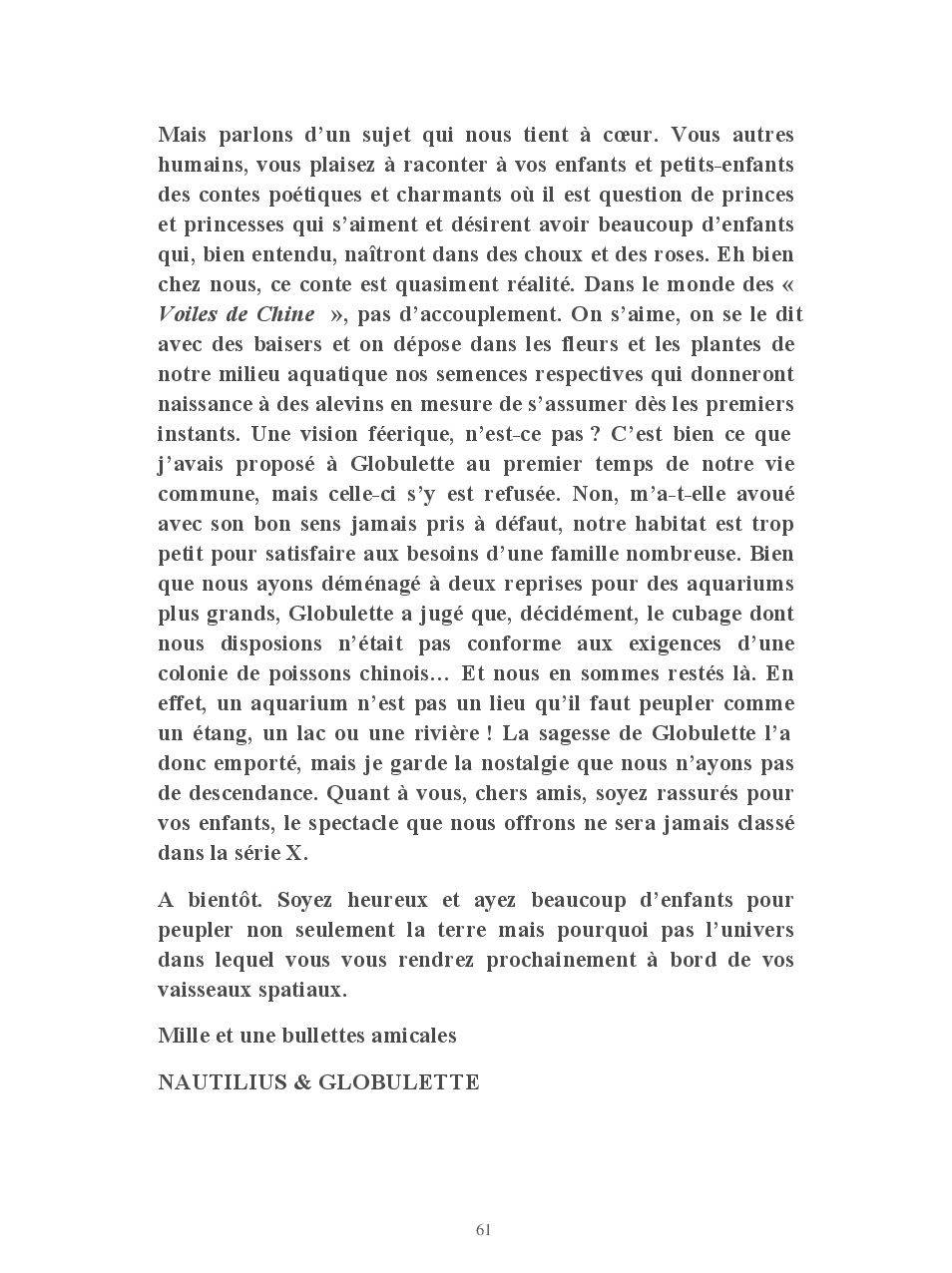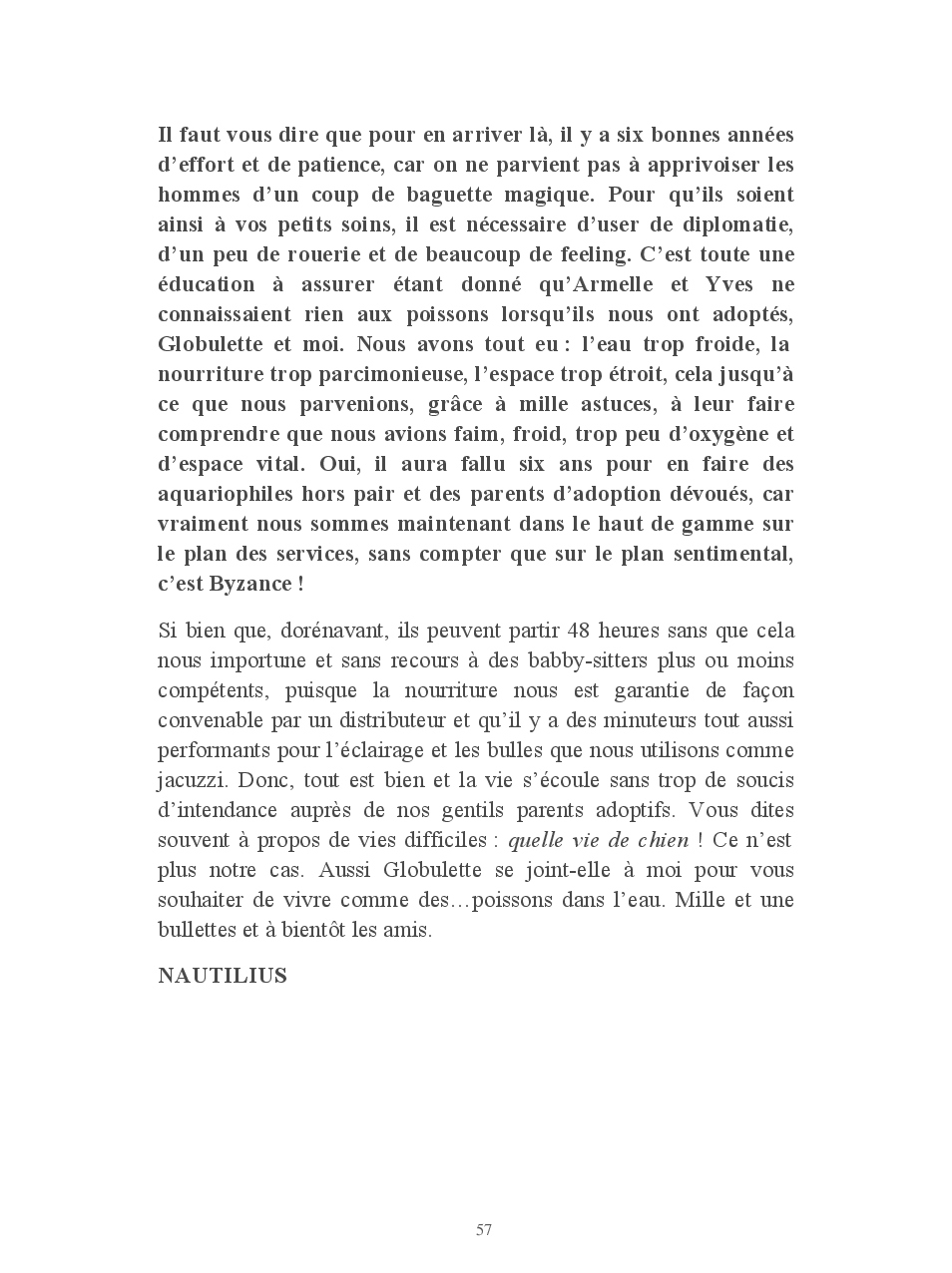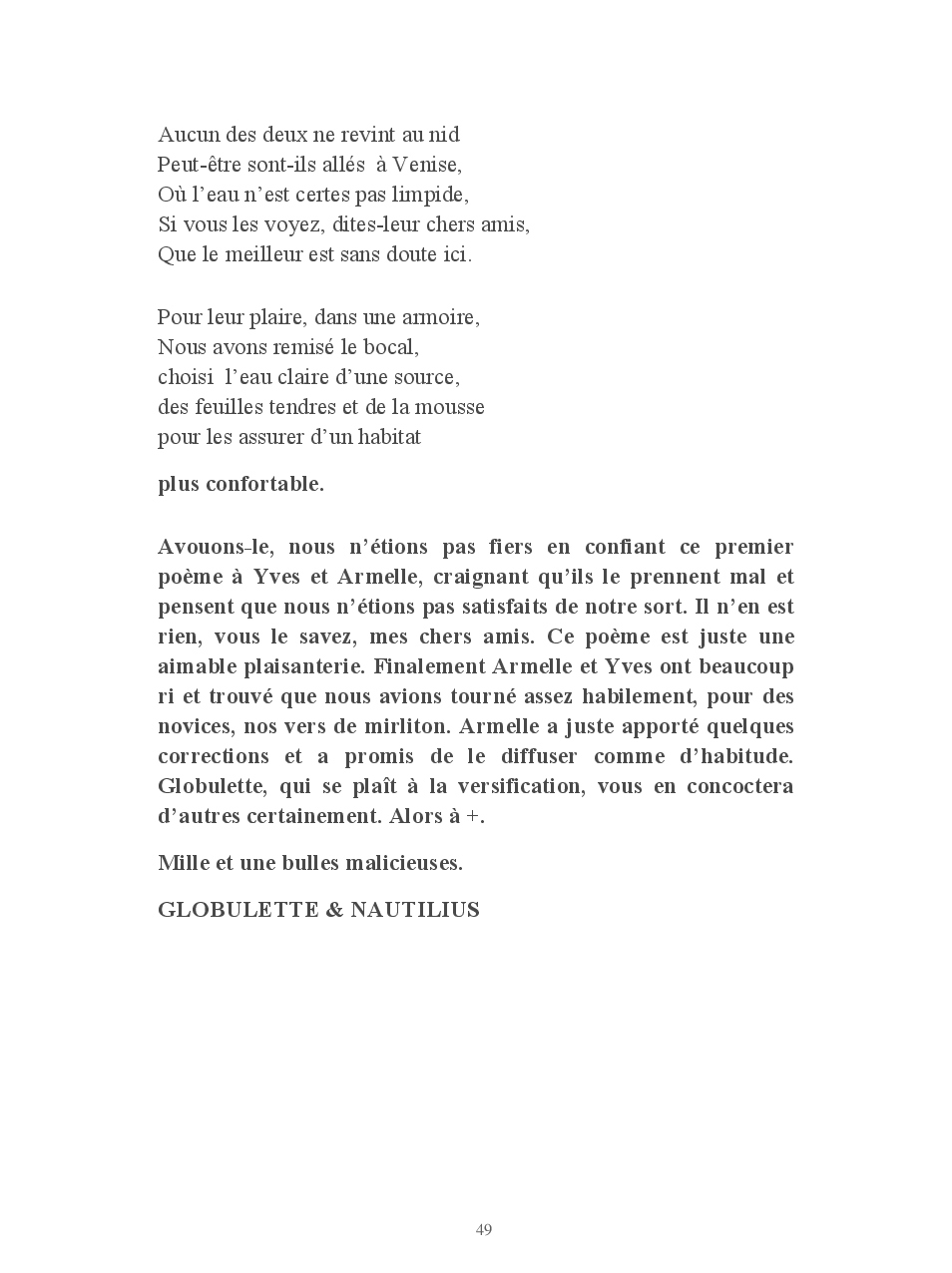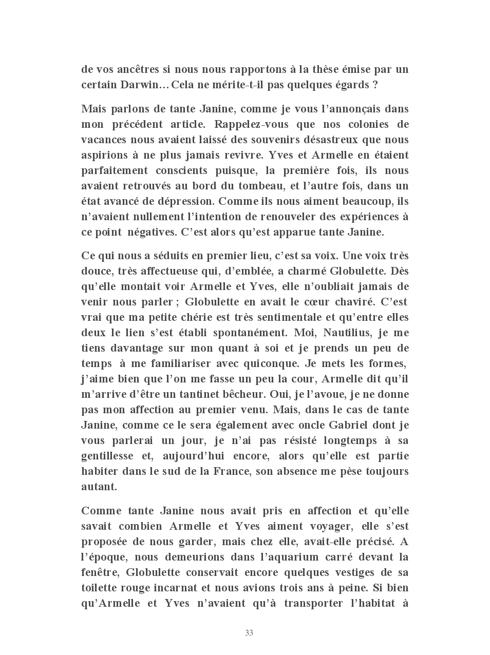 Cet ouvrage vous conte la vie de Globulette et Nautilius qui ont eu le souci de ne manquer aucun événement important de ces presque neuf années de vie partagées avec Yves et Armelle.