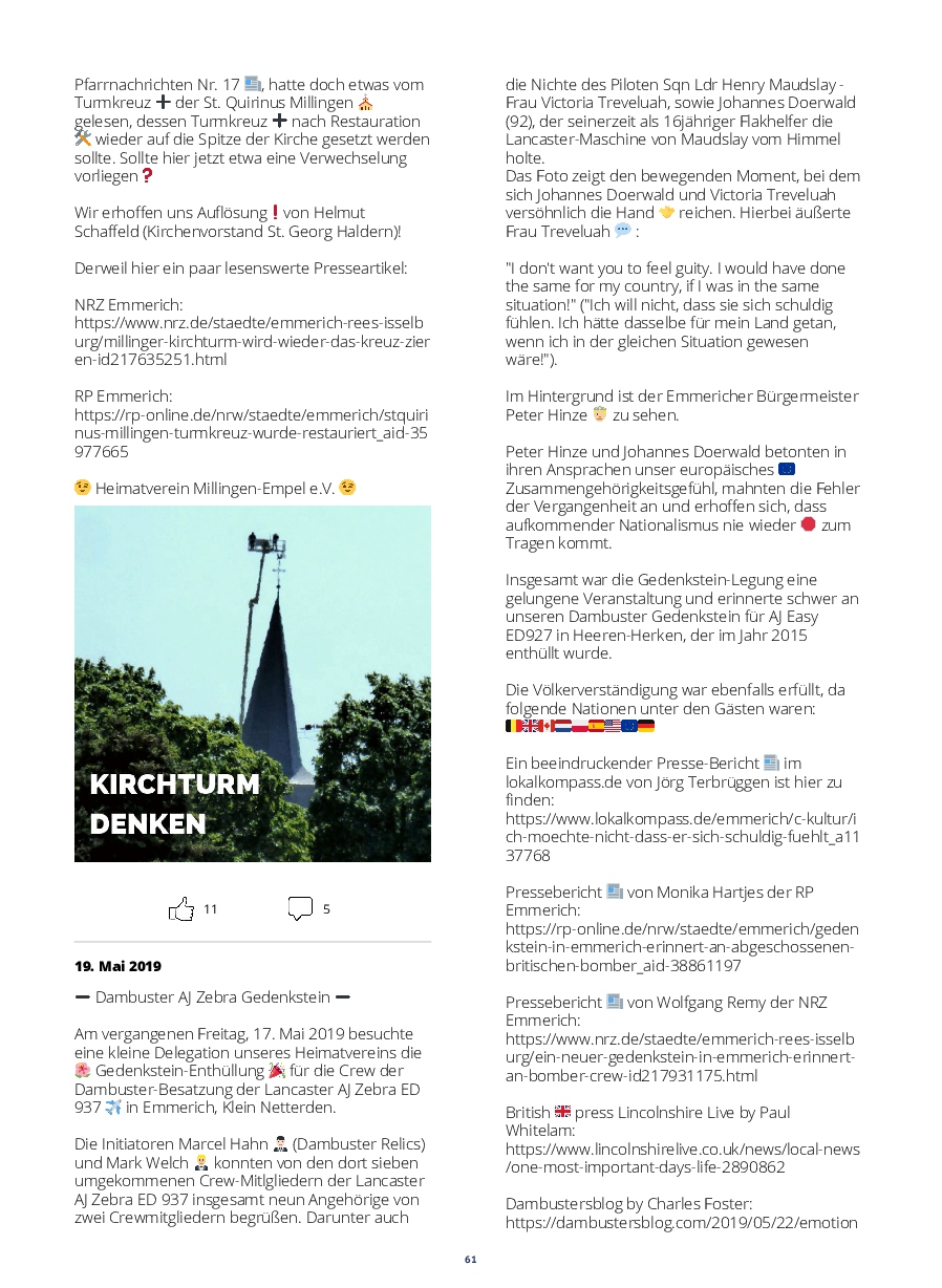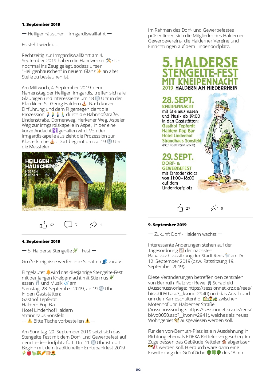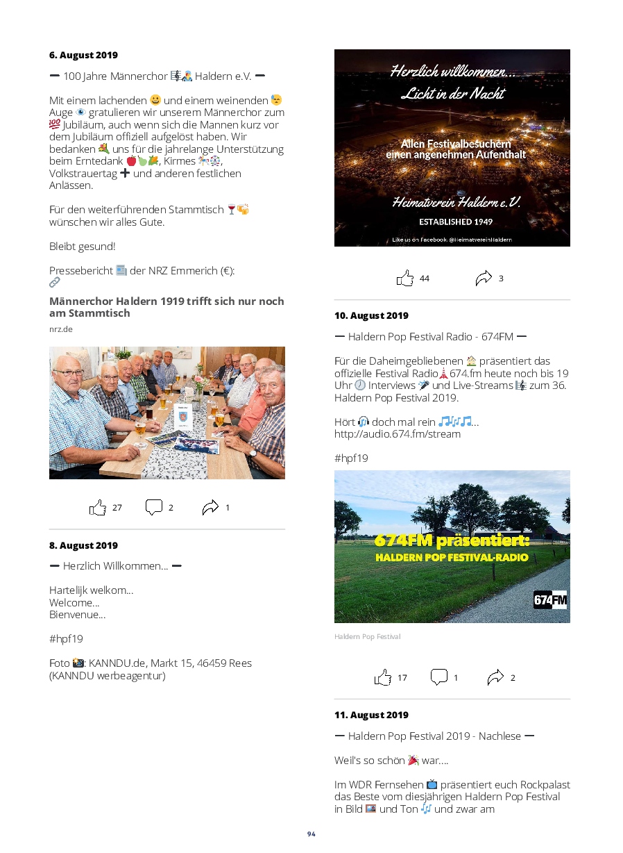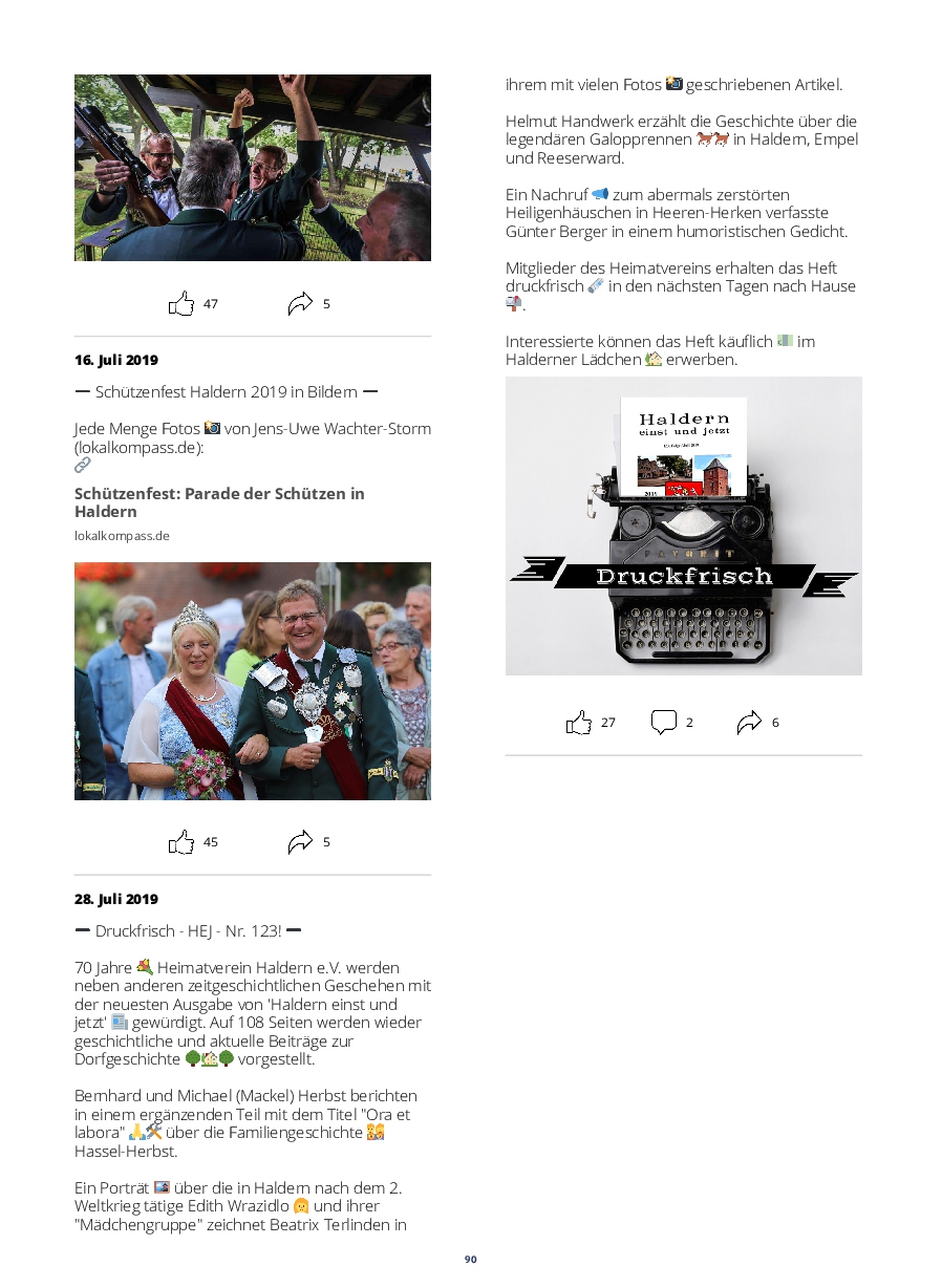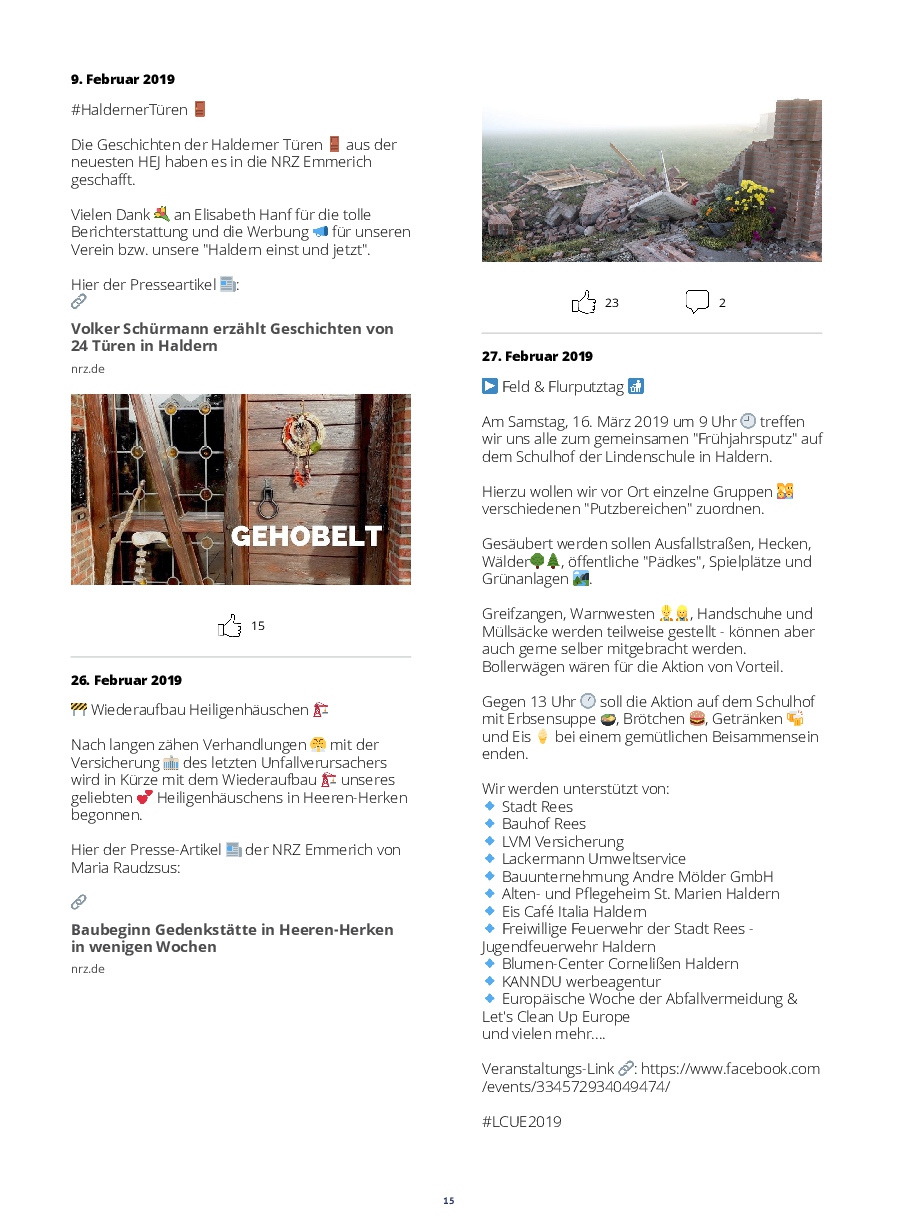 Facebook Chronik des Heimatverein Haldern e.V. für das Jahr 2019