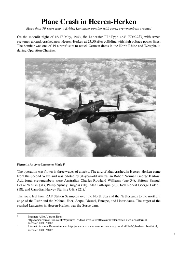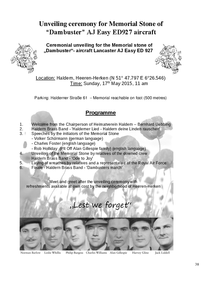 Booklet in case of the unveiling of the Dambuster Memorial Heeren-Herken 2015