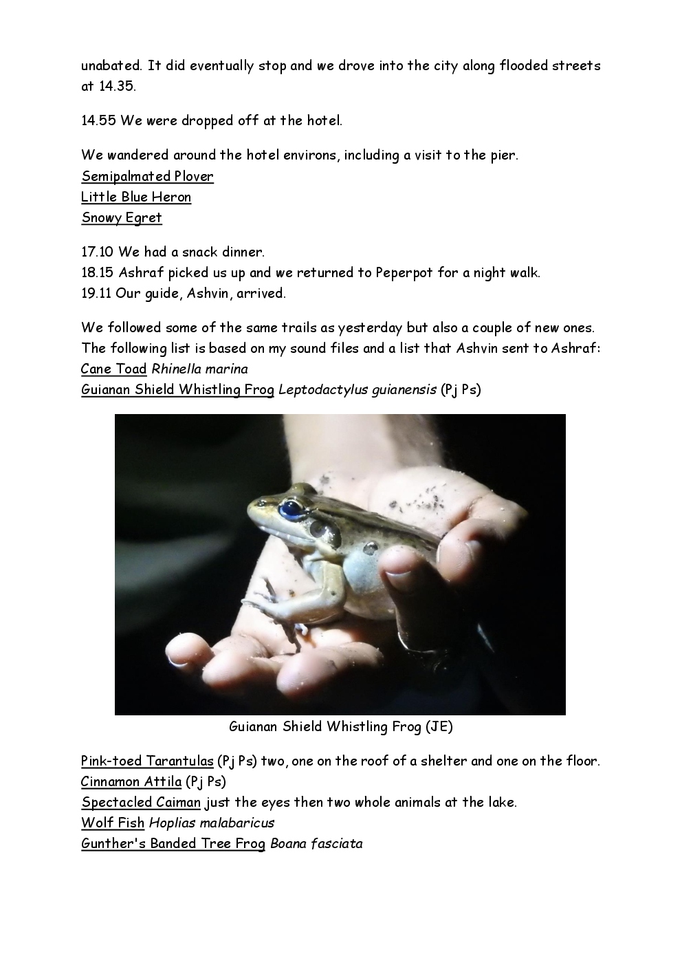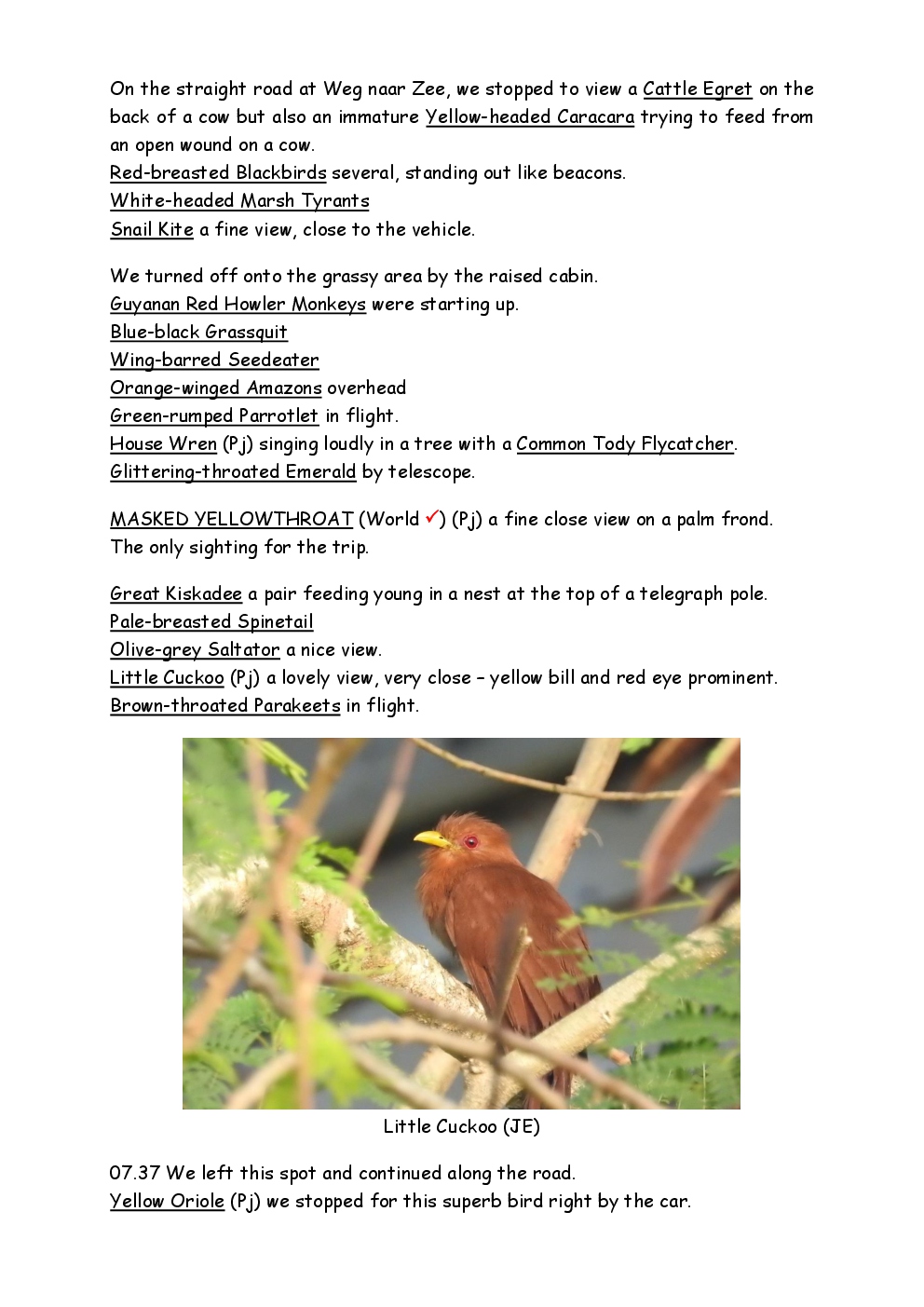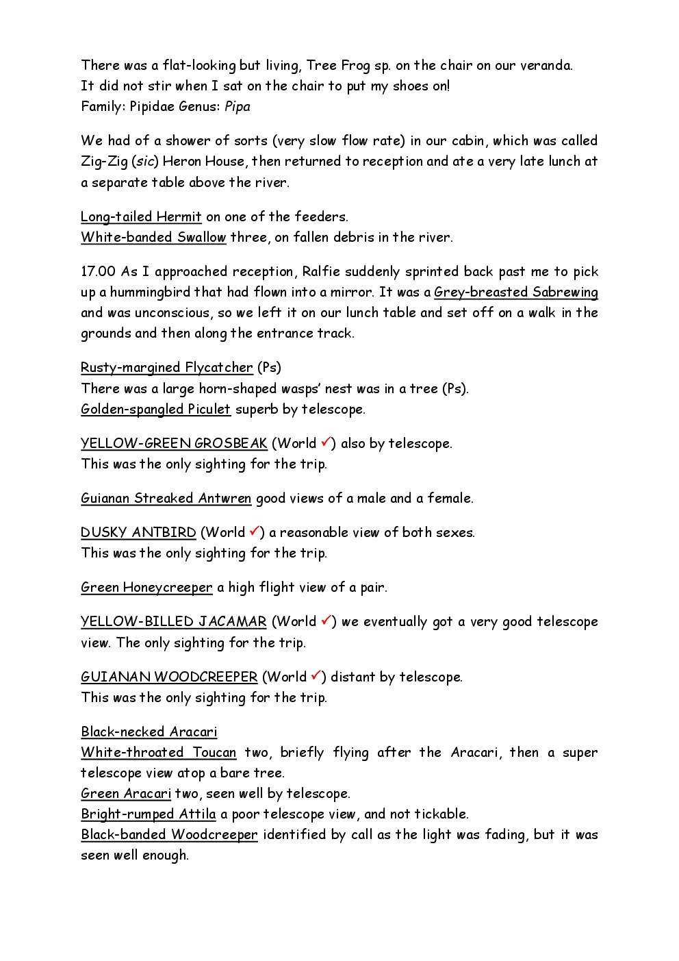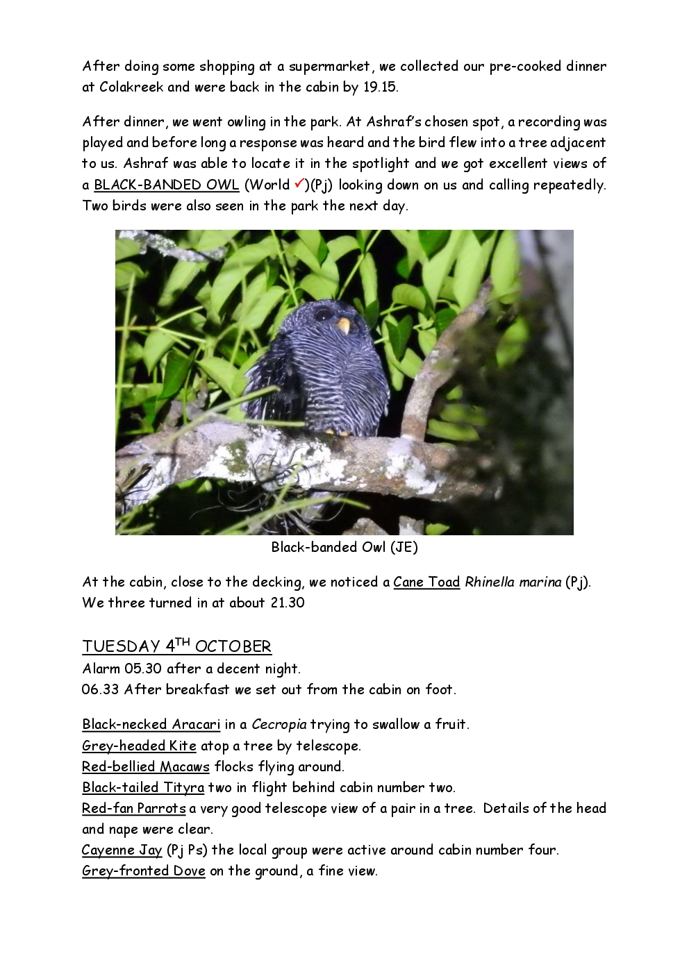 In 2022, Steve and Jackie embarked on a tailor-made birding trip to Suriname, organised by Naturetrek. They hoped to see, amongst many other species of bird, the Grey-winged Trumpeter which they were unfortunate to miss in neighbouring Guyana in 2019. This would complete a long-term project to see species from all of the 108 families of non-passerine birds. They were fortunate enough to have the services of two outstanding bird guides, Ashraf Tilburg and Rasool Boobo Ralfie Aseni both of whom had incredible field-craft and infectious humour, which ensured that a most successful and enjoyable time was had.
