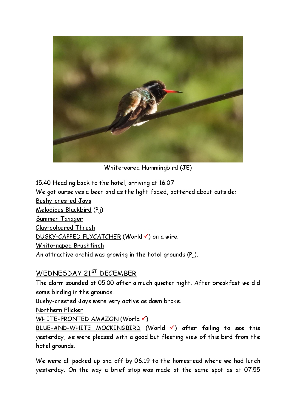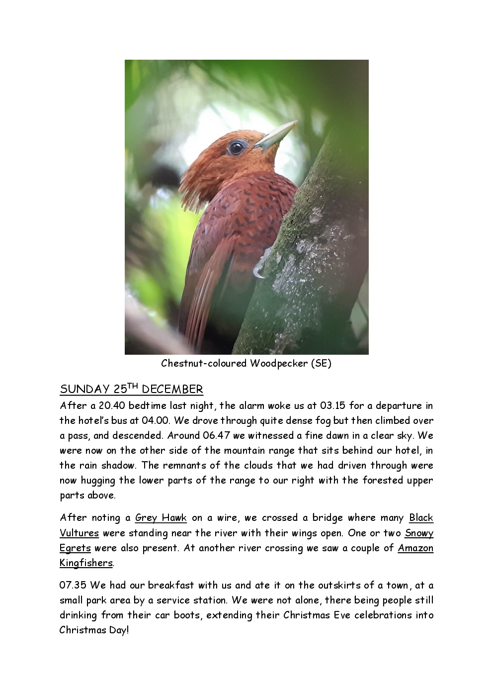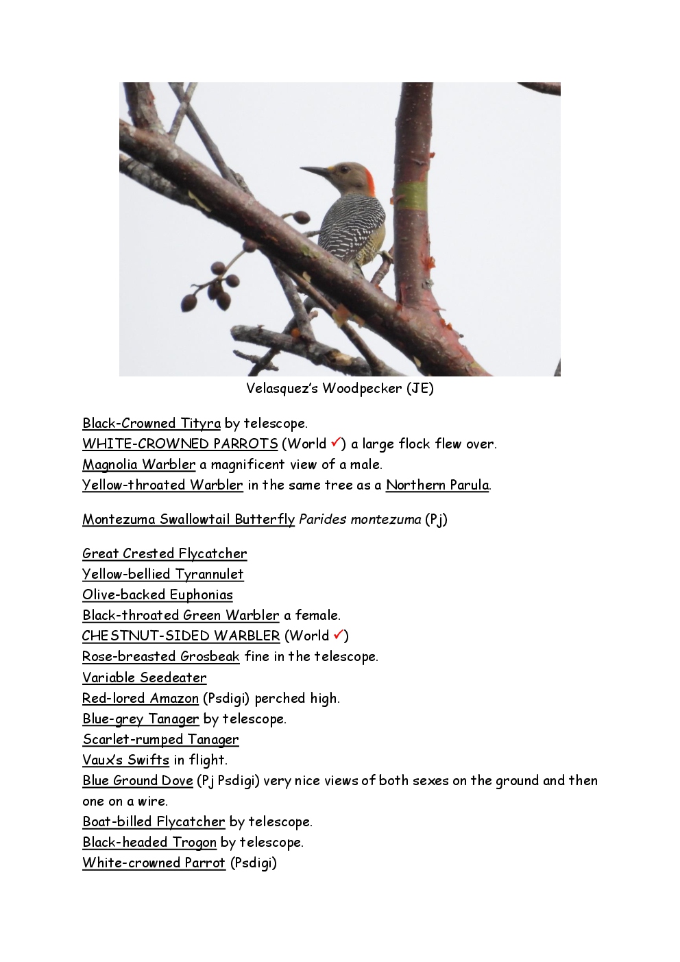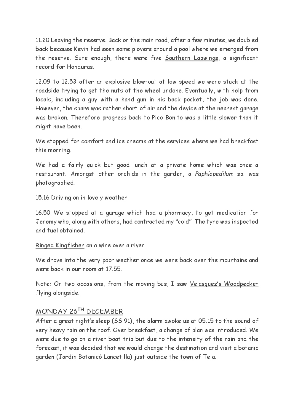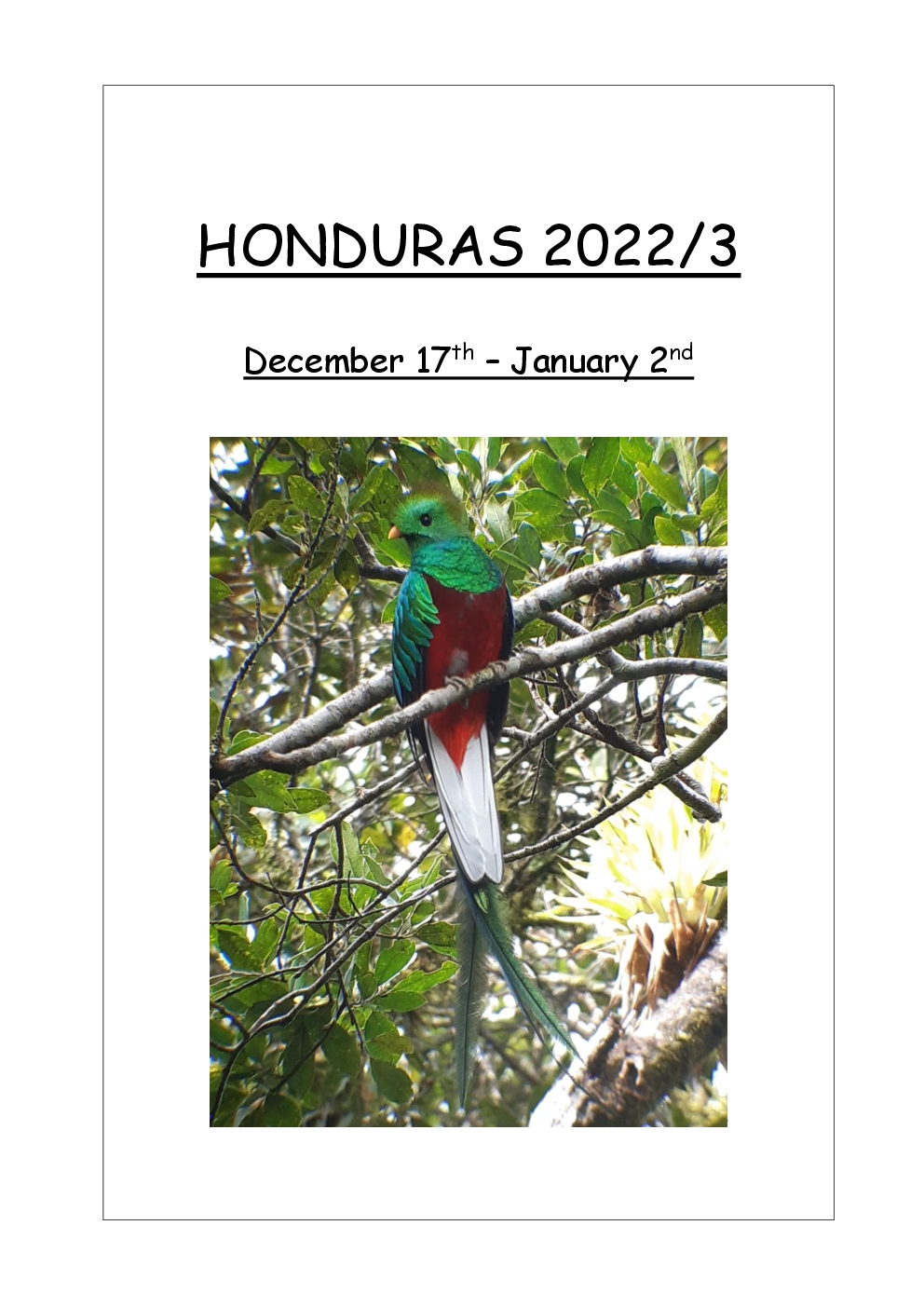 Over Christmas and New Year 2022/3, Steve and Jackie fled the UK winter and joined a Naturetrek group, birding in Honduras. They and three others plus Alex Alvarado, their guide, first spent a few days in the mountains, where the highlight was a male Resplendent Quetzal, before joining five more travellers for the lowland part of the trip. The weather was not good during the latter but nevertheless, a wide diversity of birds and other wildlife was seen. Steve and Jackie remained there, at Pico Bonito Lodge for two extra days, when the sun shone once more and the rain ceased.