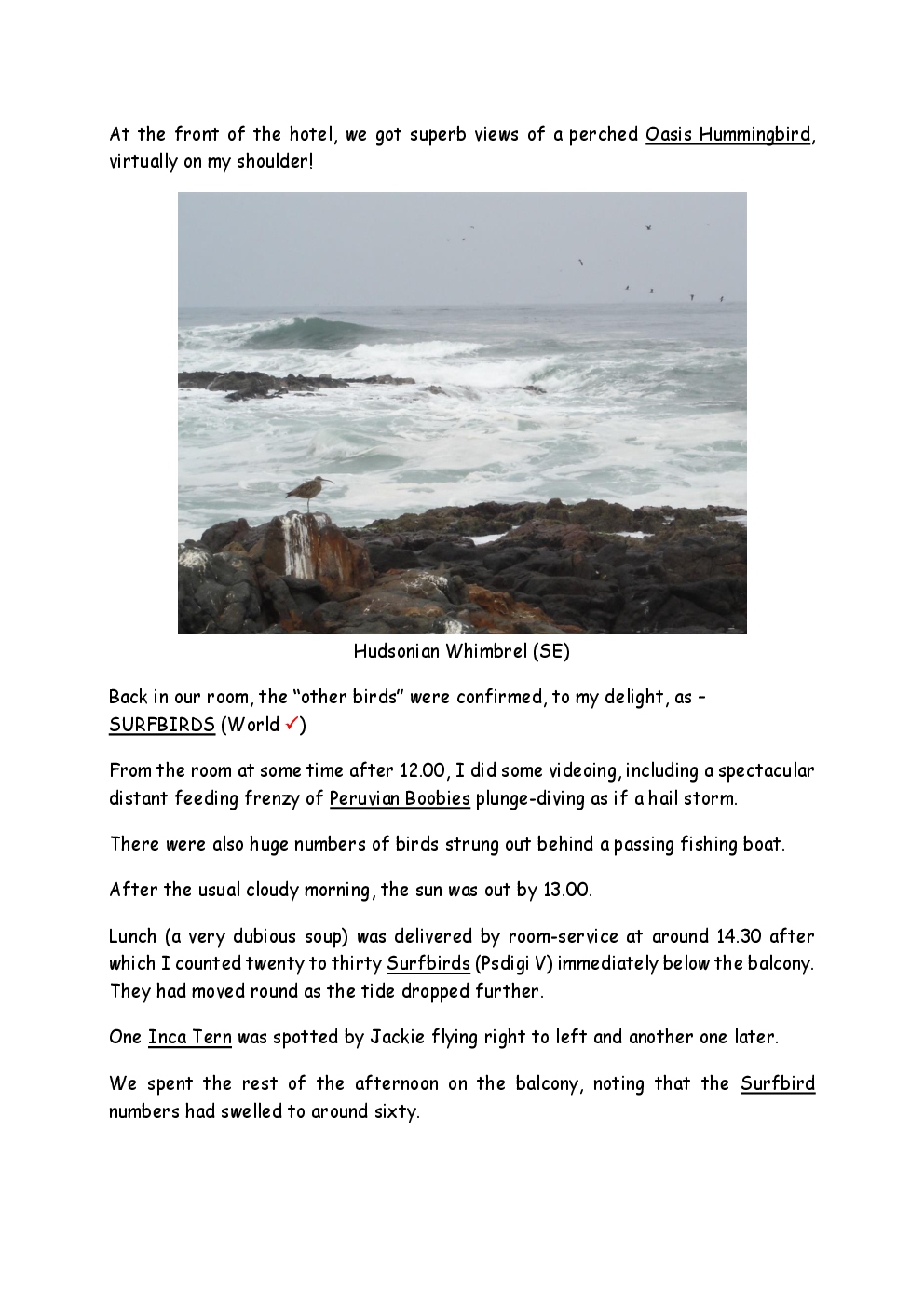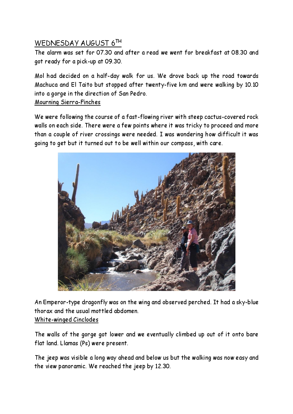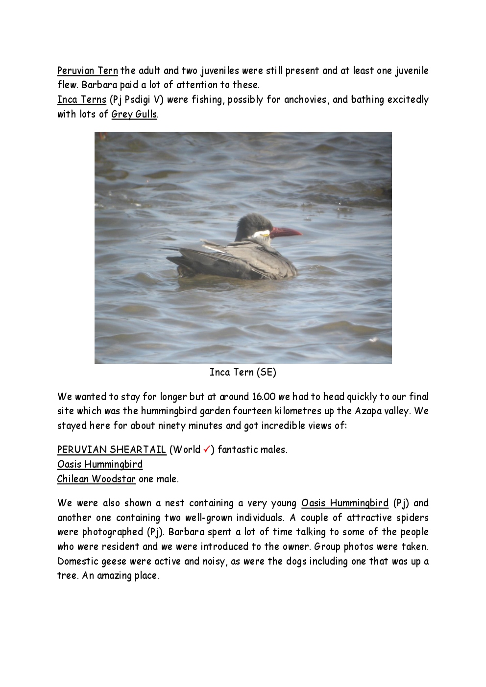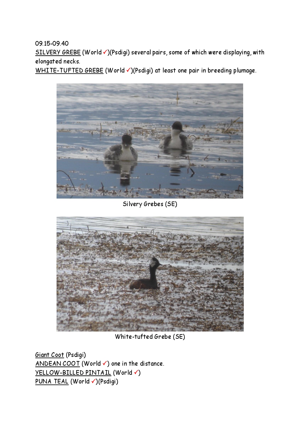 In the summer of 2008, Steve and Jackie travelled to Chile for a 17-day holiday. For the first 10 days they were in the far north of the country with a birding guide, Barbara Knapton, who looked after them as they explored the habitats of the Pacific coast, the Atacama Desert and the Andean Altiplano. For the remainder of the trip, they relocated south to the town of San Pedro de Atacama, based at a boutique hotel, from which they continued to explore the desert and the Altiplano with their guide, Mol and driver, Carlos.
