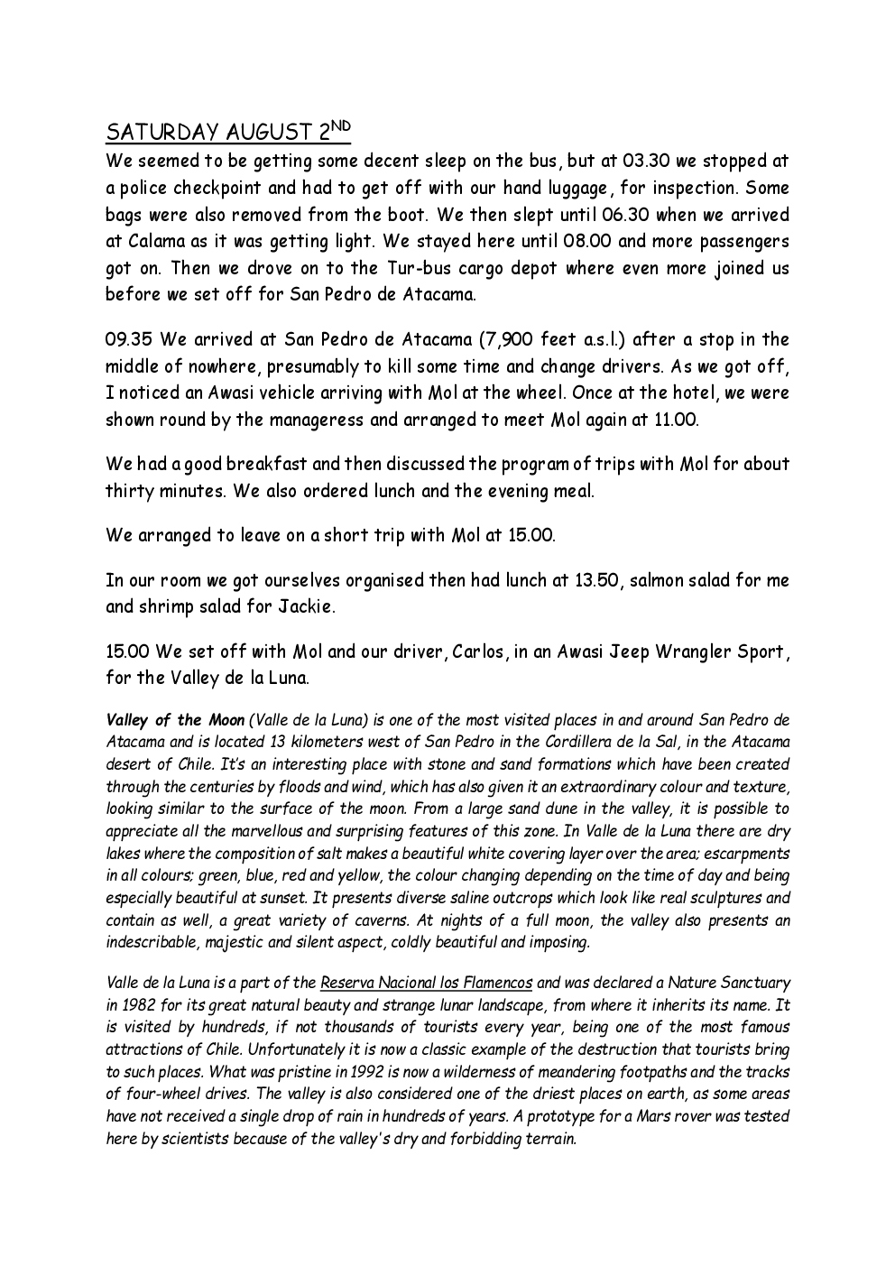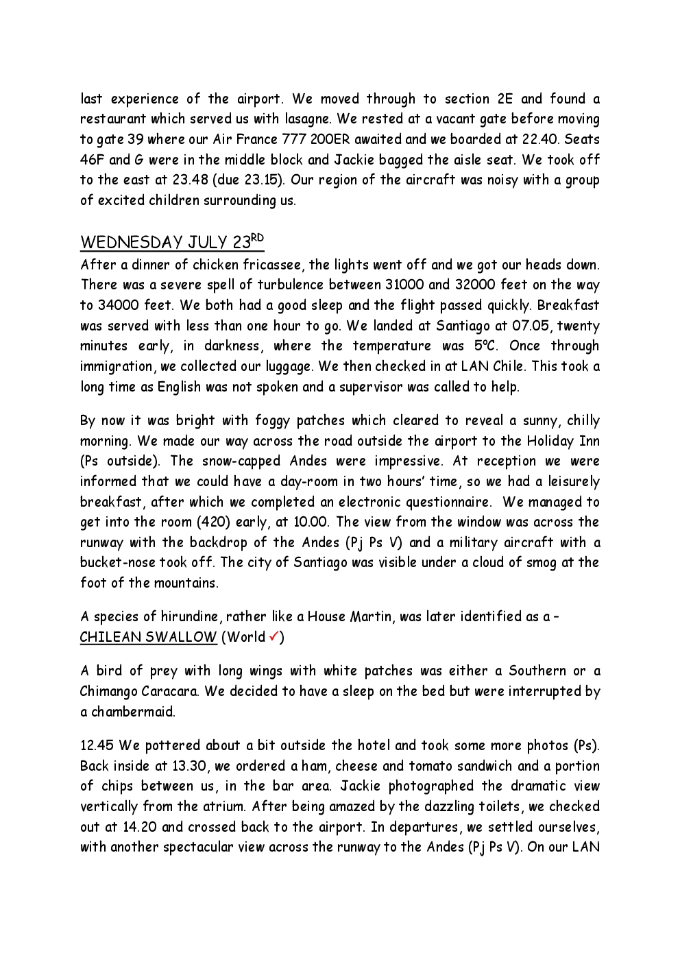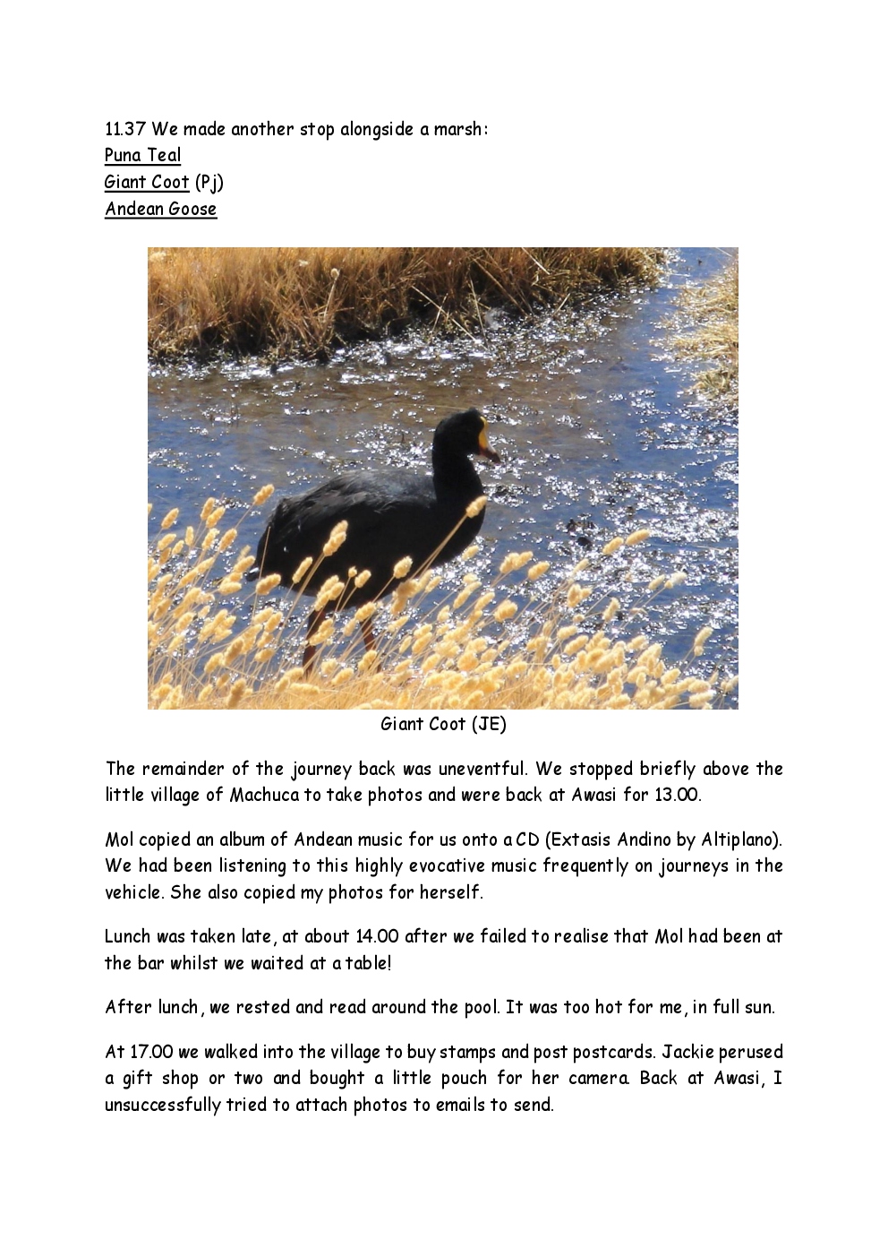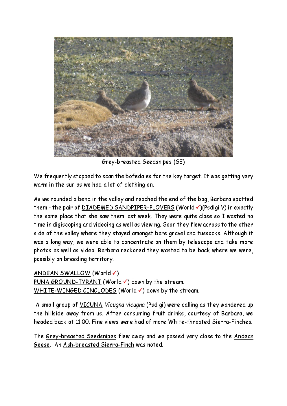 In the summer of 2008, Steve and Jackie travelled to Chile for a 17-day holiday. For the first 10 days they were in the far north of the country with a birding guide, Barbara Knapton, who looked after them as they explored the habitats of the Pacific coast, the Atacama Desert and the Andean Altiplano. For the remainder of the trip, they relocated south to the town of San Pedro de Atacama, based at a boutique hotel, from which they continued to explore the desert and the Altiplano with their guide, Mol and driver, Carlos.