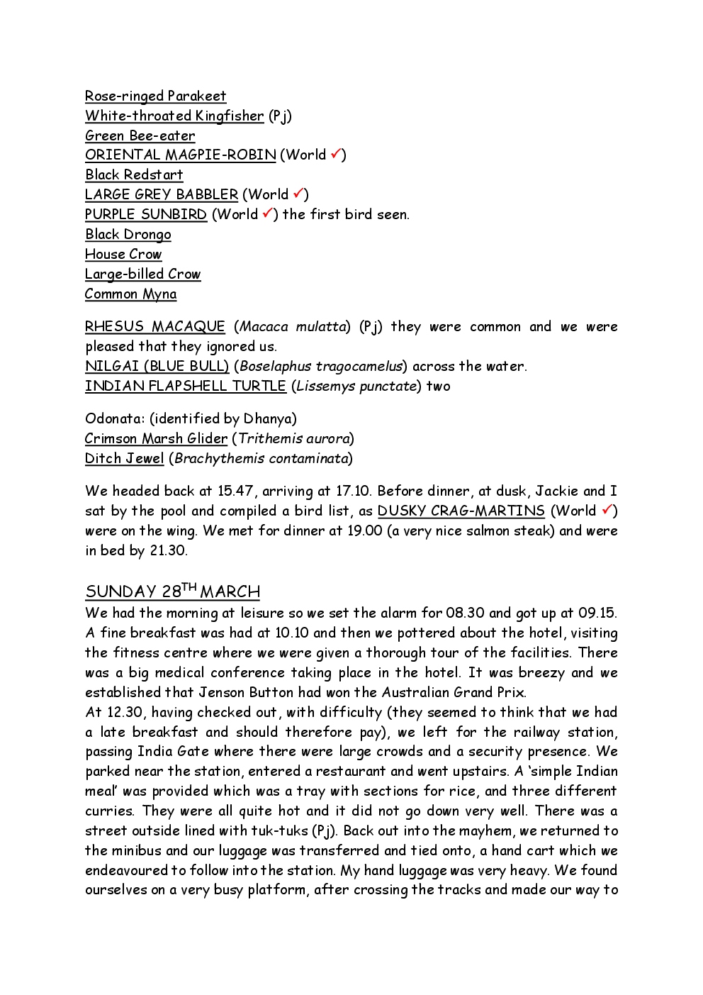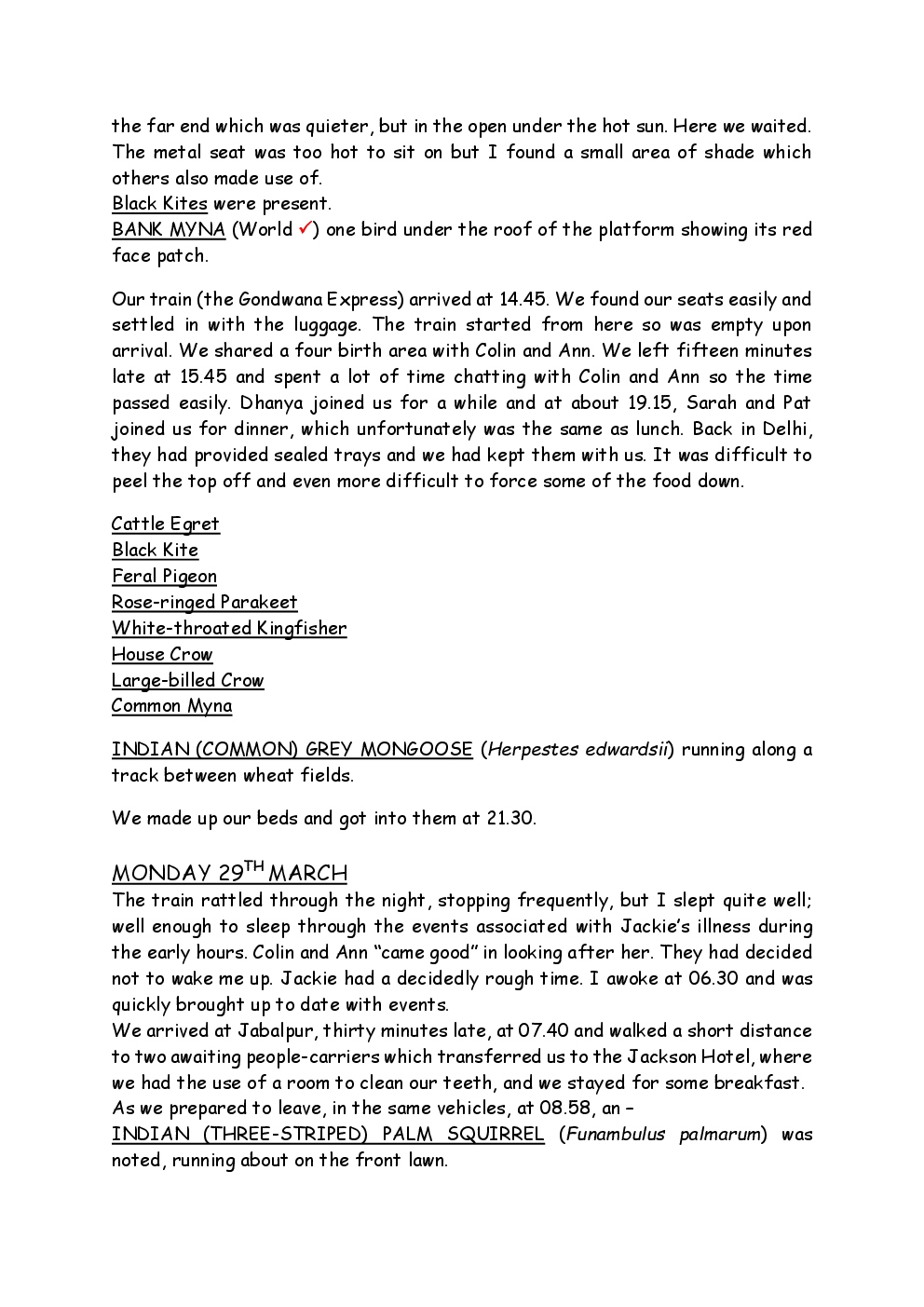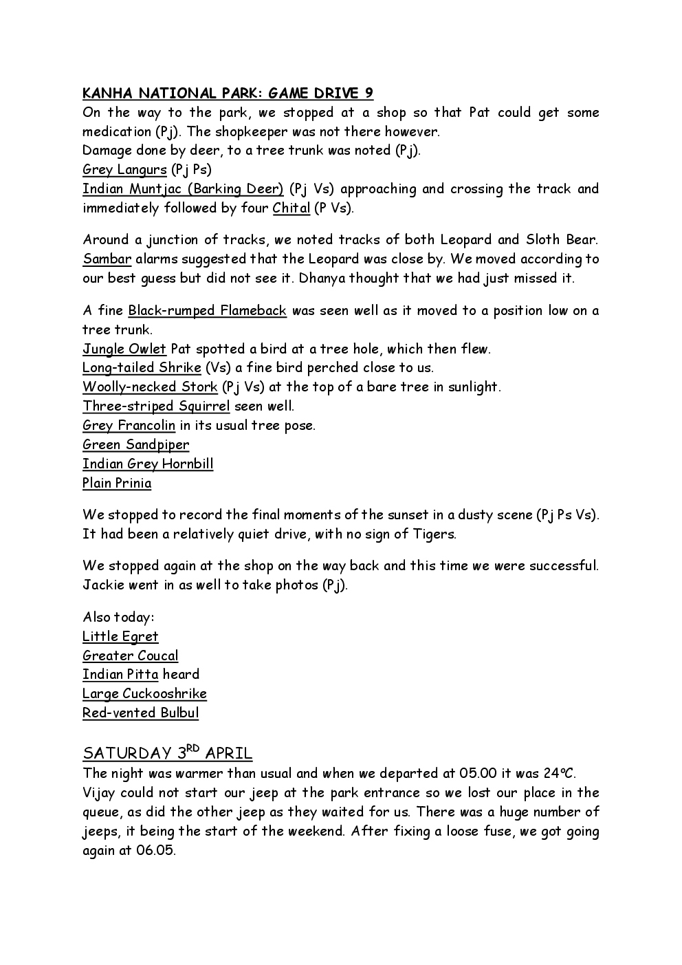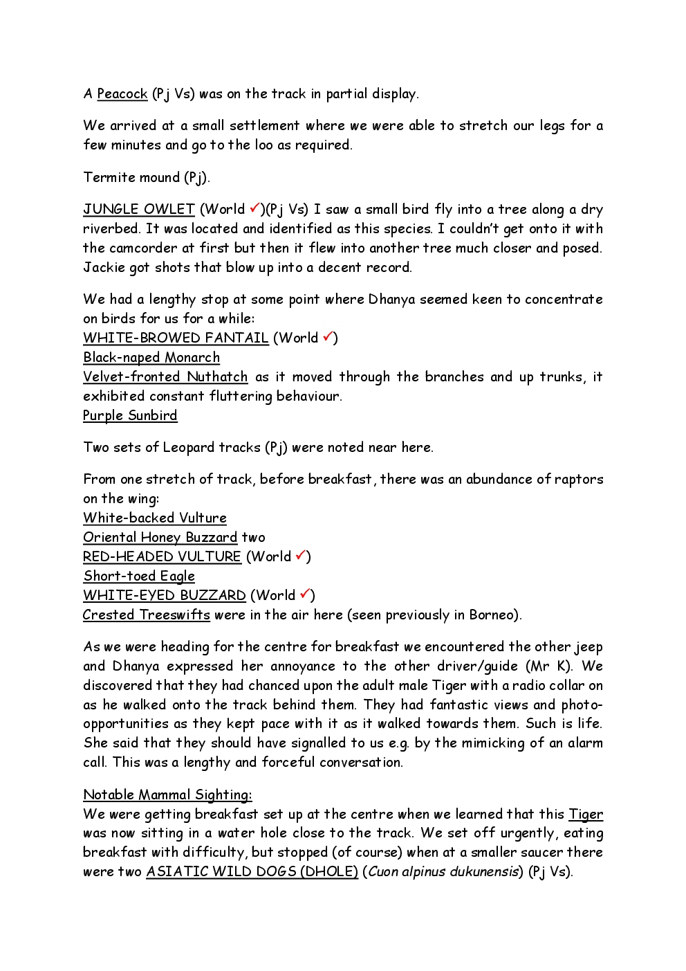 In 2010, Steve and Jackie travelled to India on a two-week group trip, organised by Naturetrek. The tour was entitled "Just Tigers" and there were six participants plus Dhanya, their guide. In Kanha National Park, they had twelve separate sightings of seven different tigers, two of which were from the back of an elephant. They also visited the Taj Mahal, spent time birding in Bharatpur Bird Sanctuary and had a memorable safari on the Chambal River.