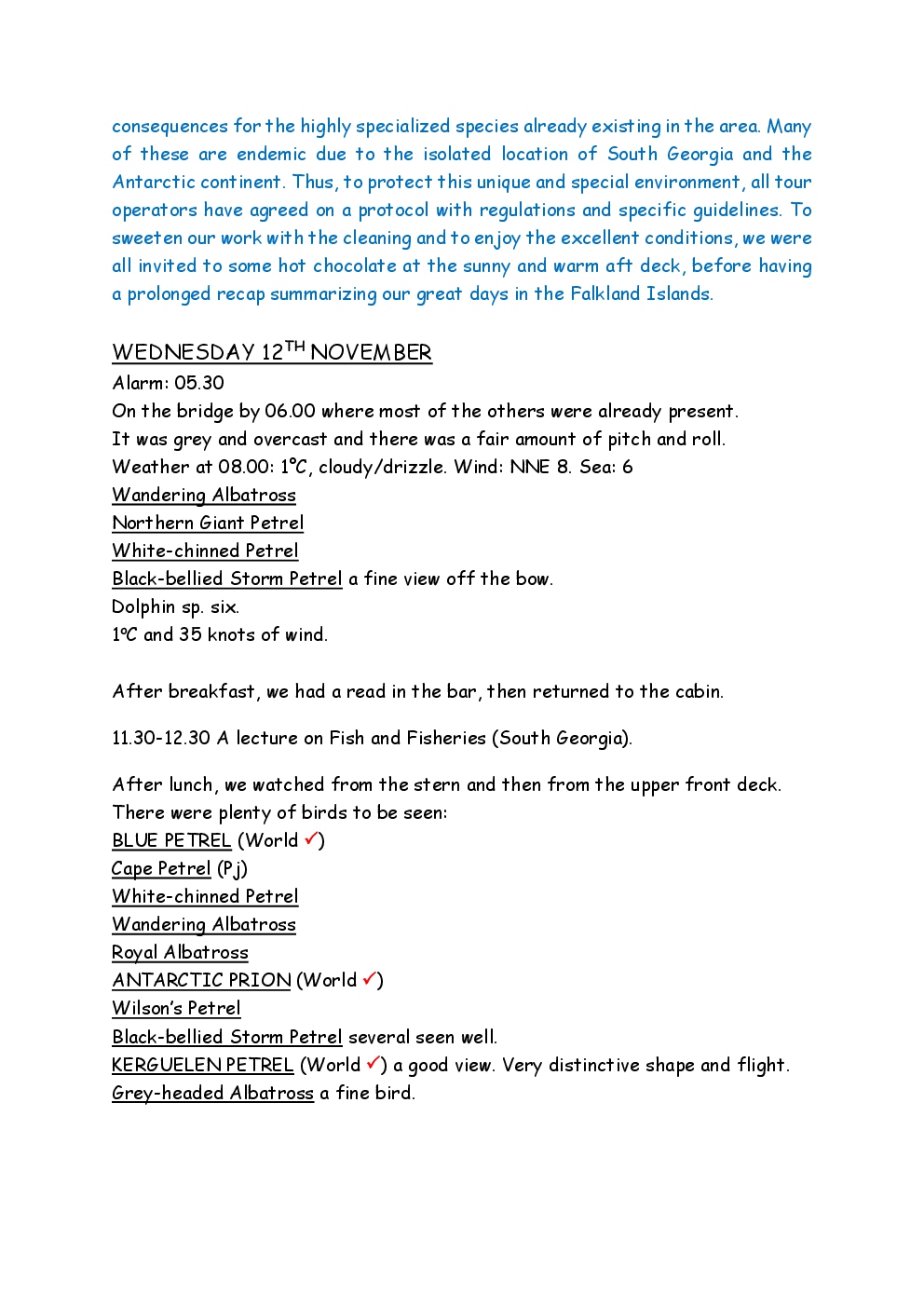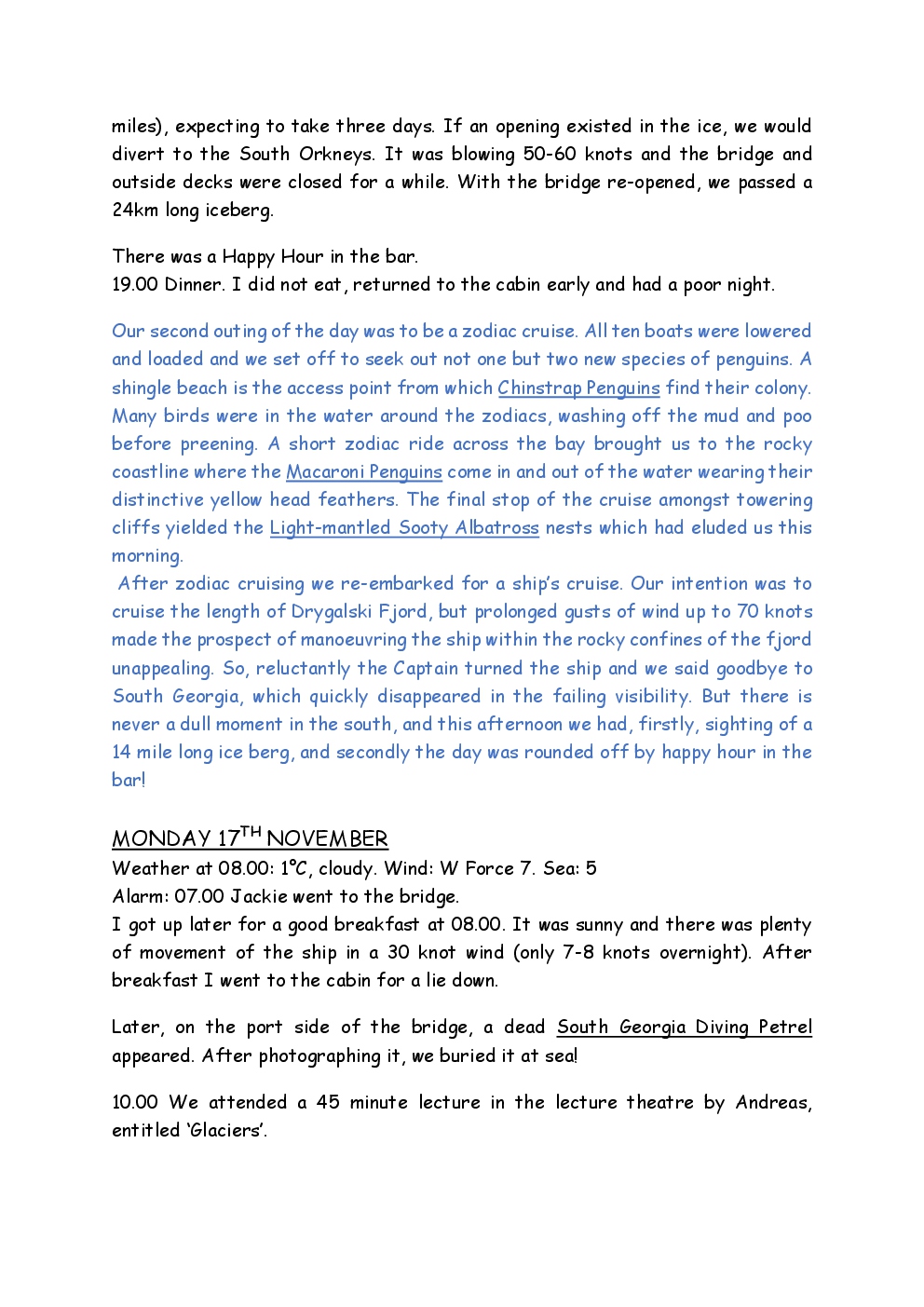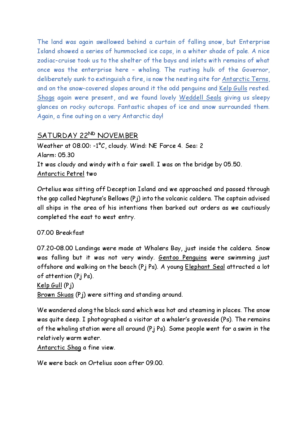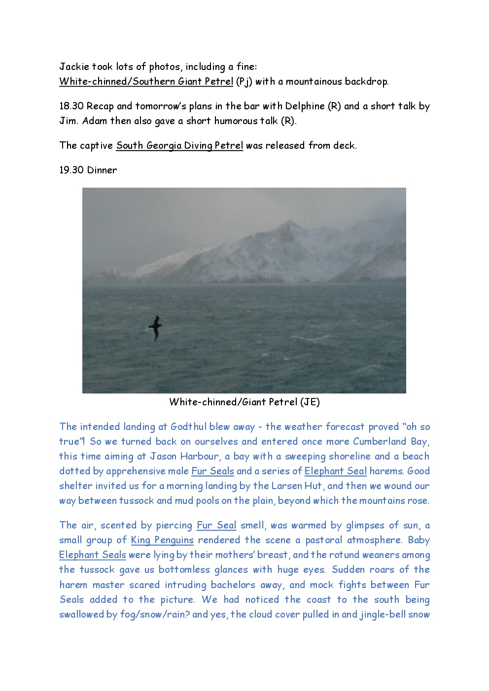 In November 2014, Steve and Jackie embarked upon a trip to the Antarctic, run by the company Oceanwide Expeditions, on the ship Ortelius. They left from Puerto Madryn on the coast of Argentina, and headed for the Falklands. From there, they continued to South Georgia, before reaching the Antarctic Peninsula, where the ice was sufficiently forgiving to allow them to set foot on the continent. After visiting Deception Island and Half Moon Island, they crossed the Drake Passage to Ushuaia, where the trip ended. Before and after the trip, they took the opportunity to explore parts of Patagonia, as well as spending a short period in Buenos Aires.