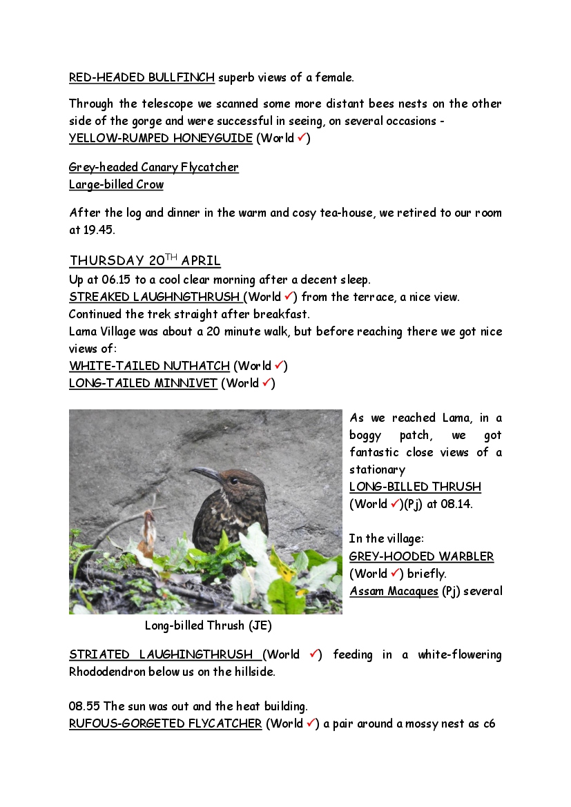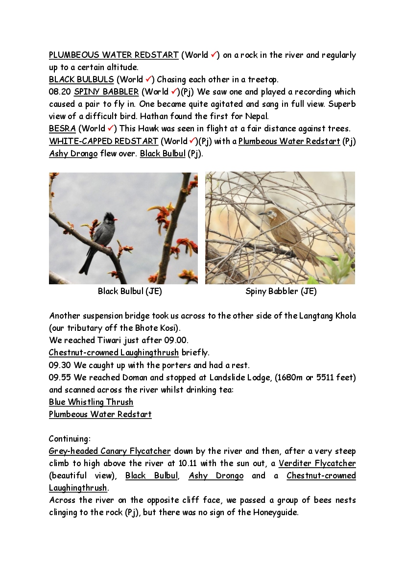 Over many years, Steve and Jackie have undertaken a project to see, in the wild, every species of non-passerine bird that belongs to a monotypic family. This has taken them to many parts of the world and culminated, in 2017, with a Himalayan trek to try and see the Ibisbill, the final bird needed to complete the project. This is an illustrated account of the trip.