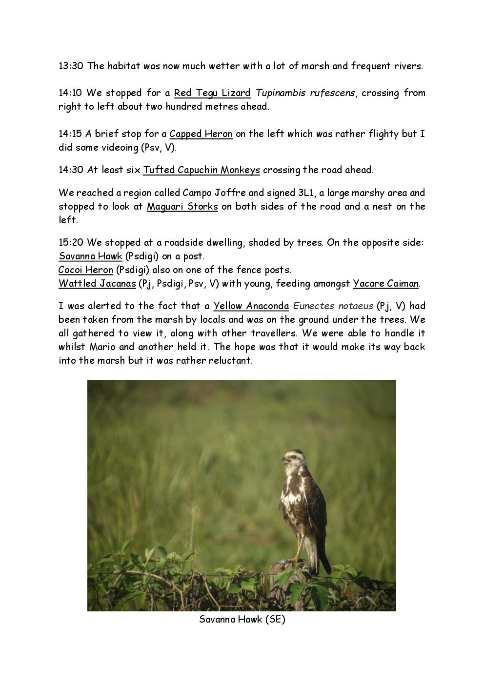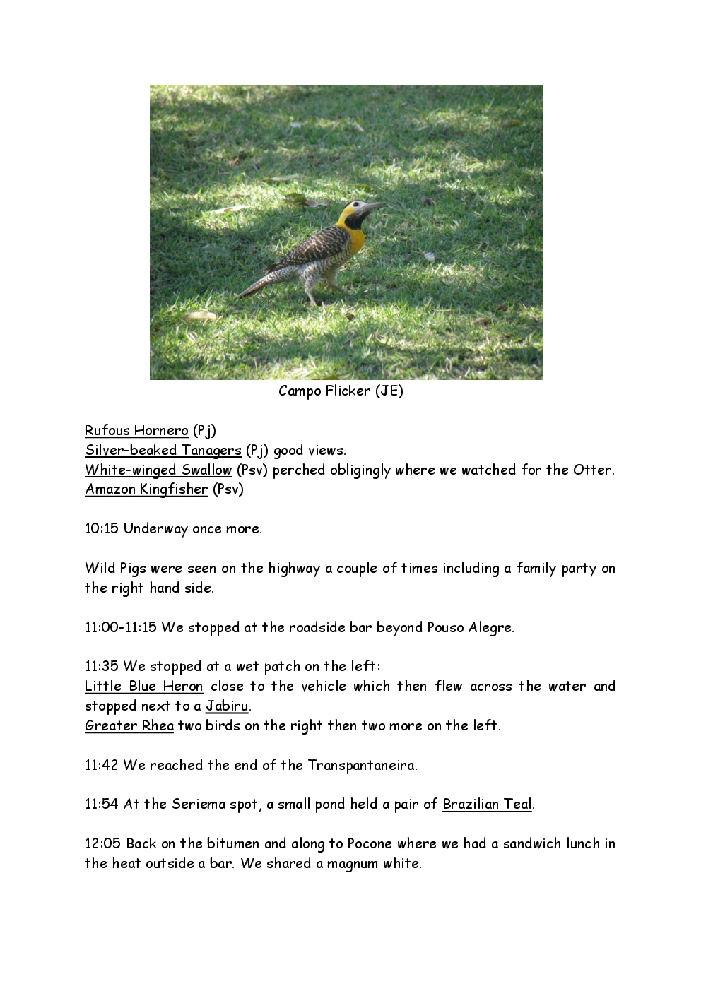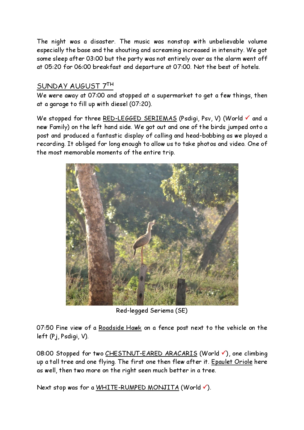 In August 2011, Steve and Jackie travelled to South America on a group trip with Naturetrek. The main focus was the vast area of unspoilt wetland in Brazil, known as the Pantanal. Here, they encountered such avian gems as Hyacinth Macaw, Sunbittern, Sun Grebe, Red-legged Seriema and Southern Screamer. From there, they moved to a more arid area north of the Pantanal, the cerrado, where there is a different community of birds. Finally, they flew to Foz de Iguazu, to witness the spectacular Iguacu Falls. Three days were spent on the Argentinian side of the falls, where the birding was also good, before concluding the holiday back in Brazil.