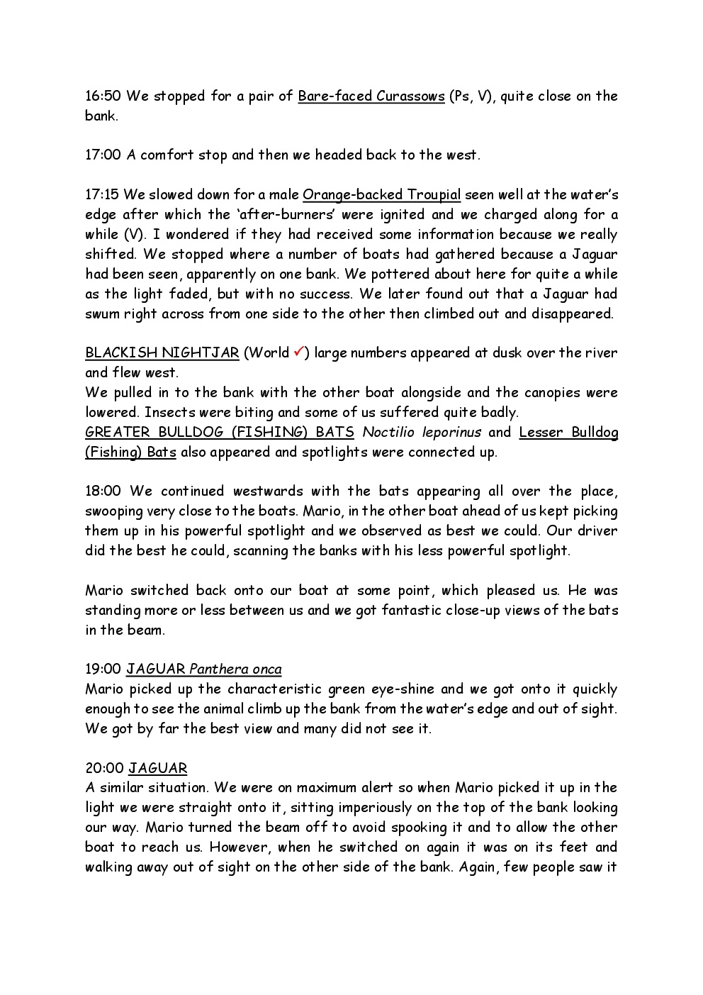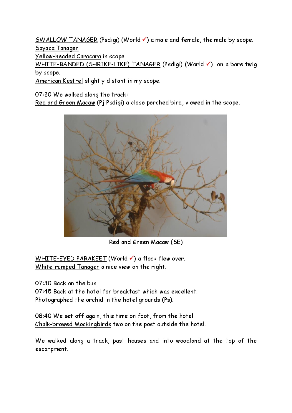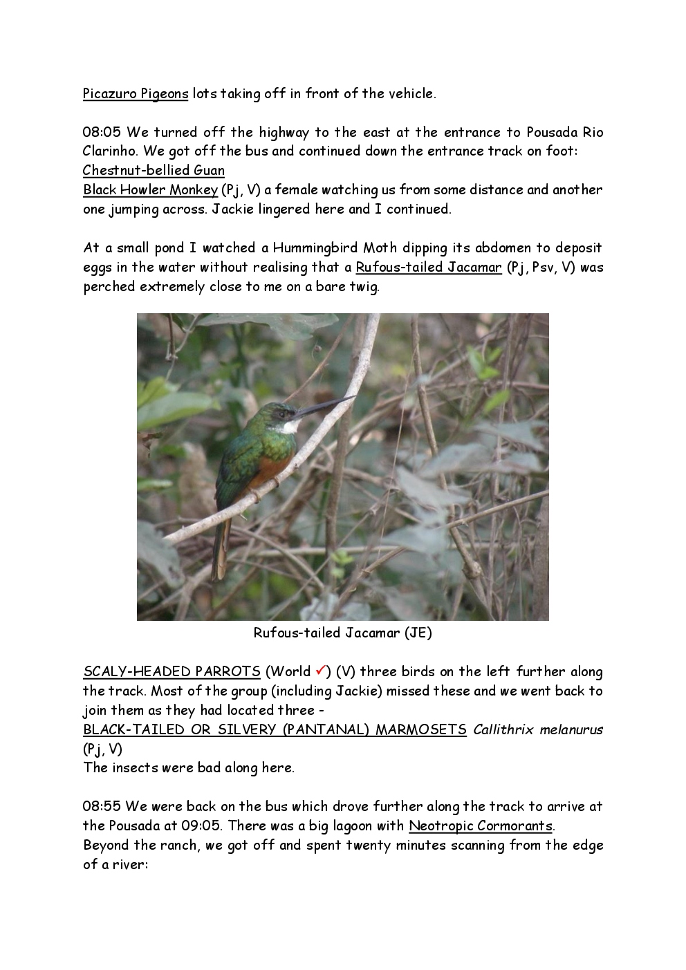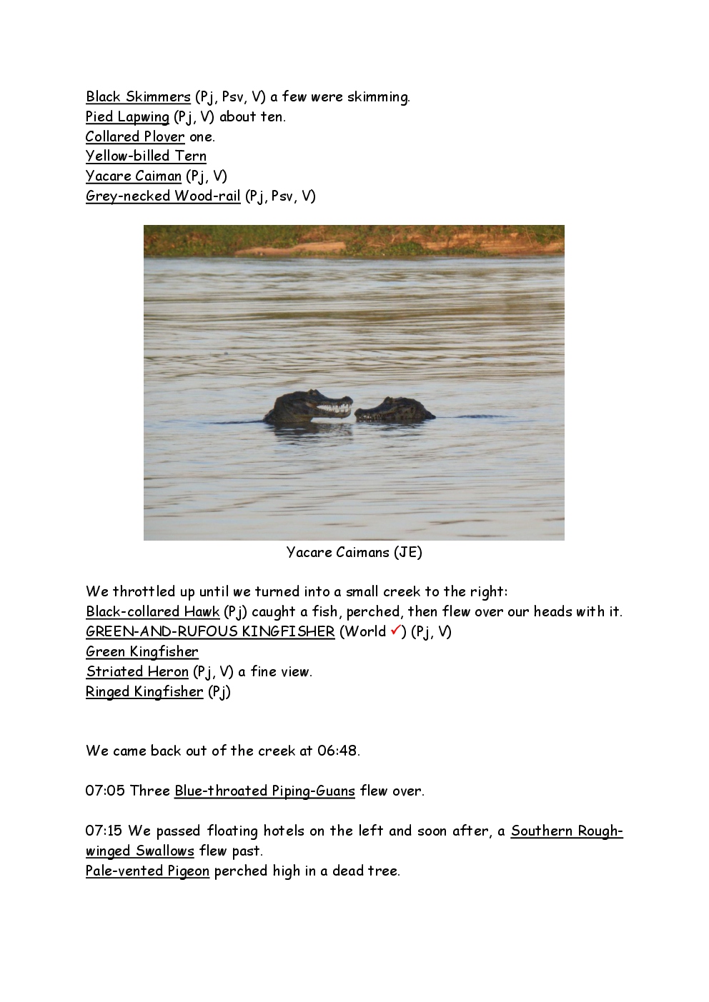 In August 2011, Steve and Jackie travelled to South America on a group trip with Naturetrek. The main focus was the vast area of unspoilt wetland in Brazil, known as the Pantanal. Here, they encountered such avian gems as Hyacinth Macaw, Sunbittern, Sun Grebe, Red-legged Seriema and Southern Screamer. From there, they moved to a more arid area north of the Pantanal, the cerrado, where there is a different community of birds. Finally, they flew to Foz de Iguazu, to witness the spectacular Iguacu Falls. Three days were spent on the Argentinian side of the falls, where the birding was also good, before concluding the holiday back in Brazil.
