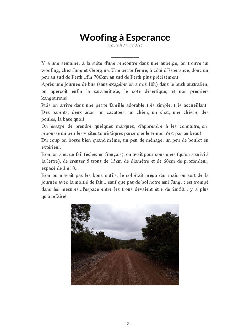 C'est l'histoire d'un "petit" tour en Australie, deux woofings, un travail de 3 mois, de belles rencontres et des paysages à couper le souffle!