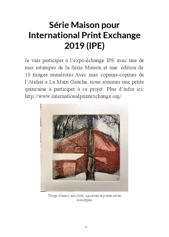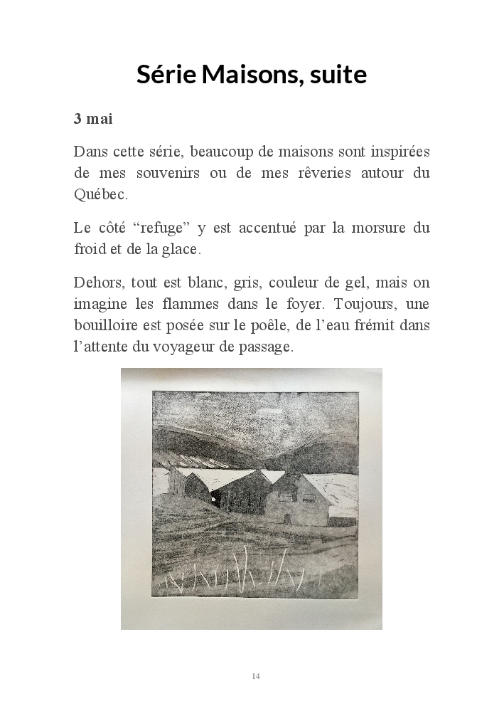 2019 fut placé sous le signe du voyage. Ma série de gravures, "Home, suite Home" , était au départ une évocation des maisons du Grand Nord telles que je les ai rêvées, et telles que je les ai enfin vues lors d'un séjour d'hiver au Québec.