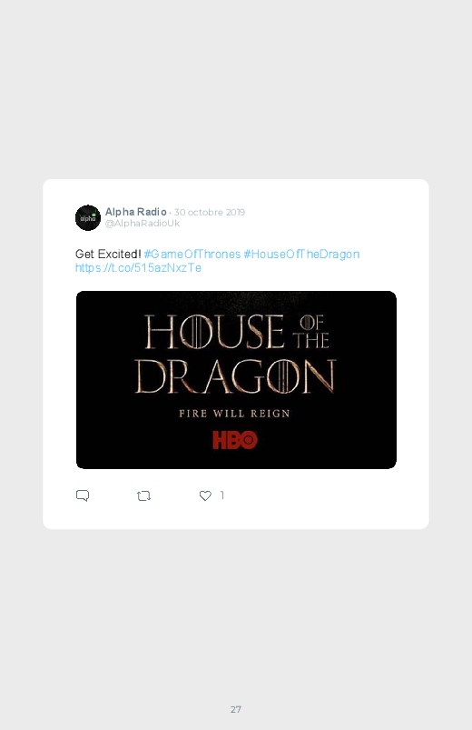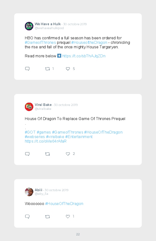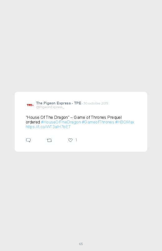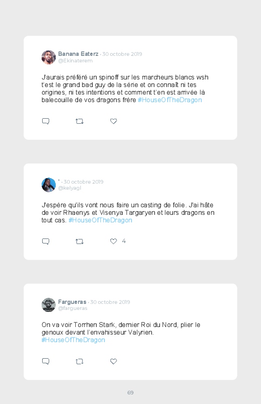 La célèbre série mondialement reconnue Game Of Thrones revient dans un prequel autour du personnage de Daenerys de quoi aider les fans à se remettre de la fin de la série ! Découvrez les premières réactions des internautes face à cette annonce dans ce livre Twitter. Vous aussi sauvegardez les tweets de votre film ou série préféré !