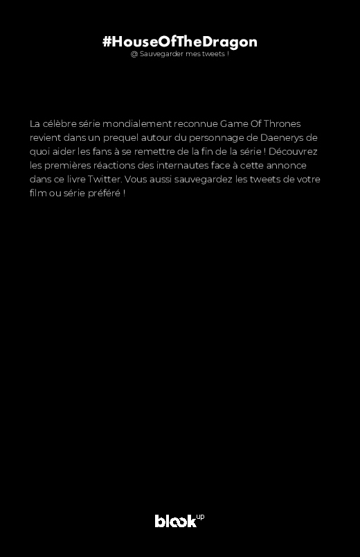 #HouseOfTheDragon made the blook of their their Twitter account ! Support their creativity by buying their blook or create your own now on BlookUp!