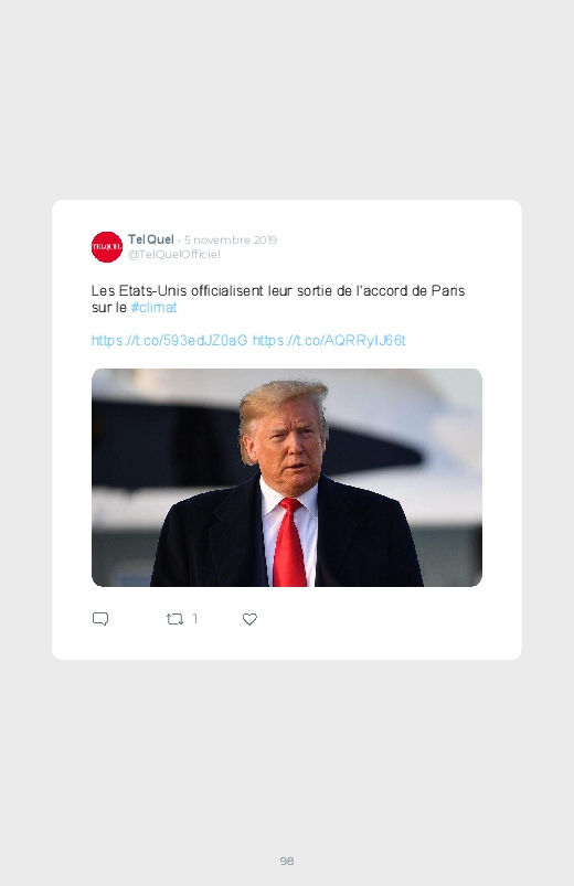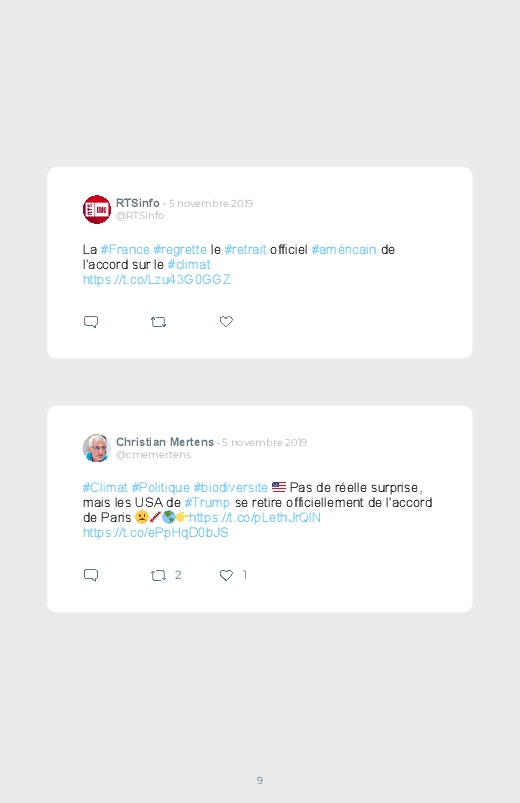 Sauvegardez vos tweets et créez votre propre blook Twitter ! Aujourd'hui, on revient sur l’officialisation du retrait des Etats-Unis dans l'accord de Paris par Donald Trump. Une décision controversée et qui anime les débats sur Twitter. Le retrait serait prévu pour le 4 novembre 2020.