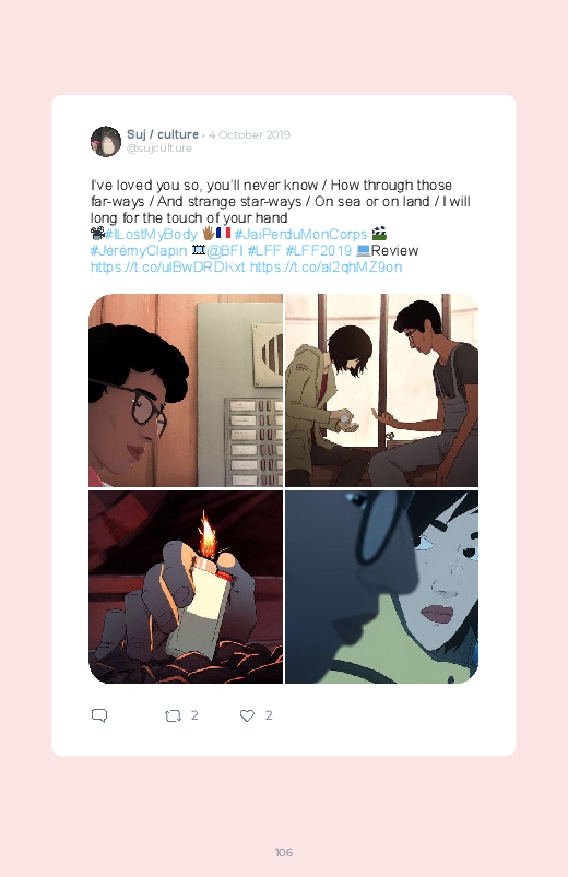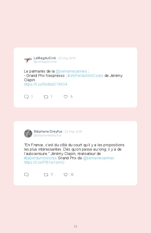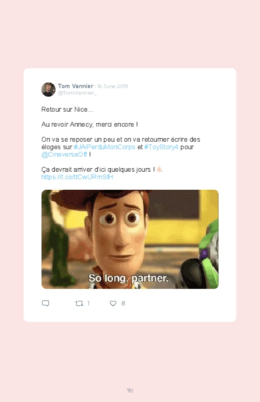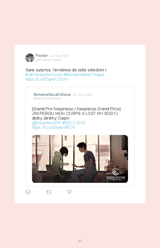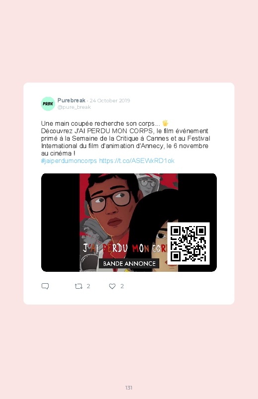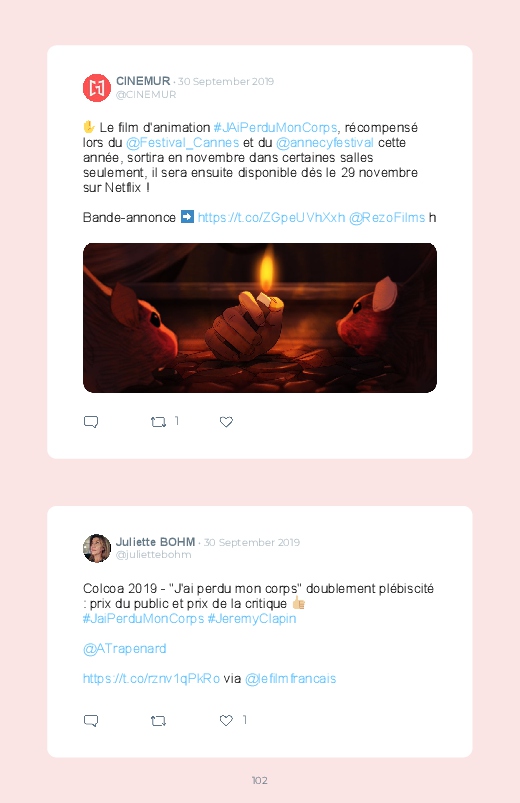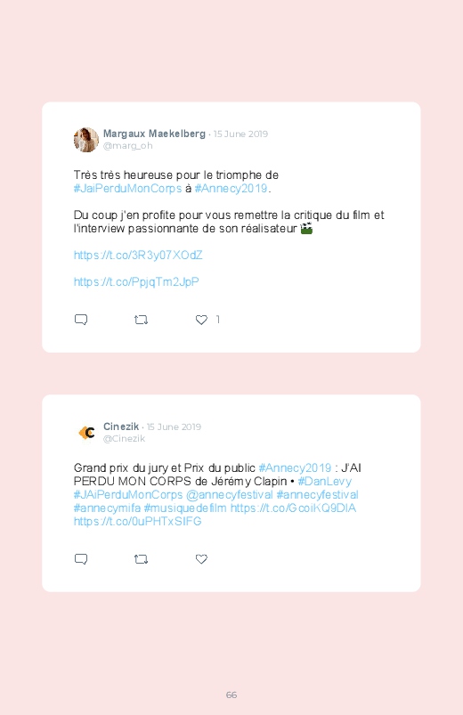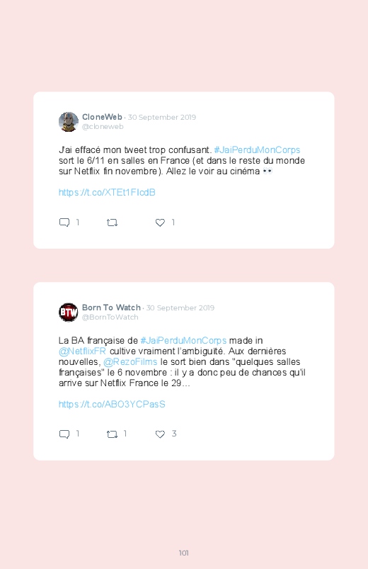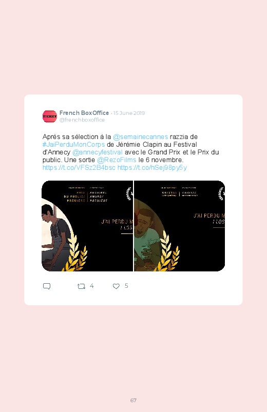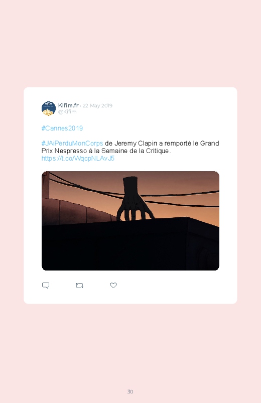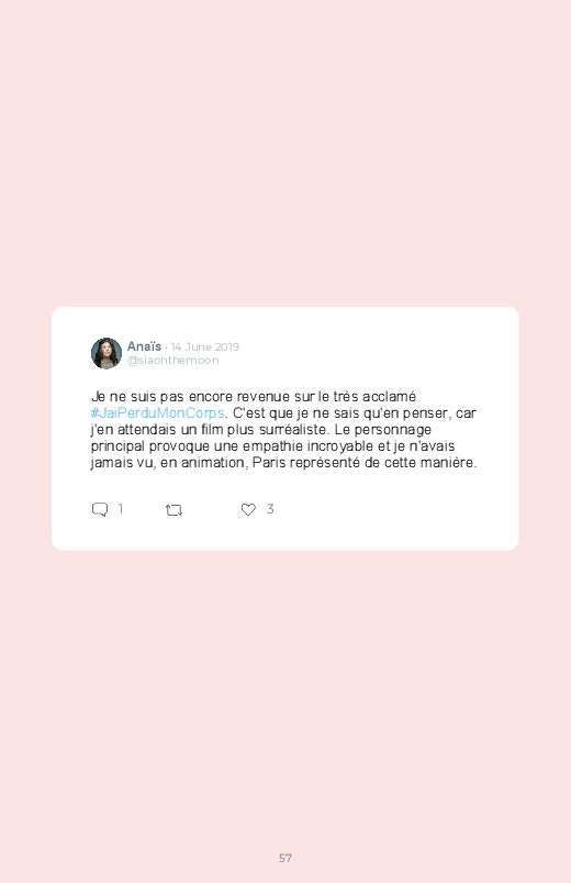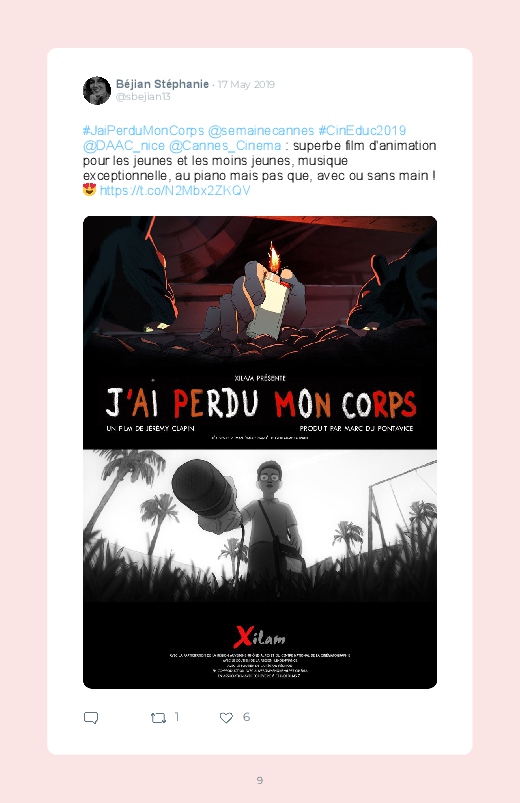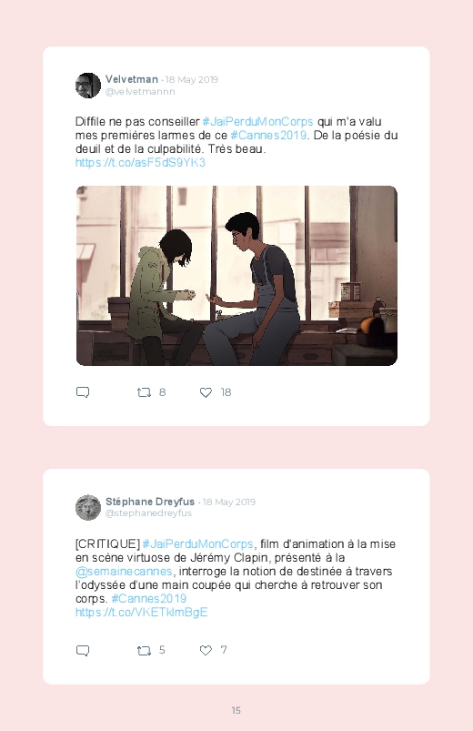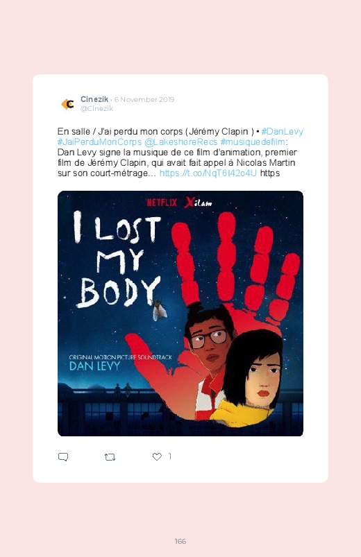 Aujourd'hui sort le long métrage d’animation "Jai perdu mon corps", un film français aux nombreux prix et nominations salué par la critique publique et de la presse. Réalisé par Jérémy Clapin, embarqué pour ce thriller tout aussi bouleversant que émouvant. Vous aussi soyez créatif en sauvegardant vos tweets et en réalisant votre livre Twitter.