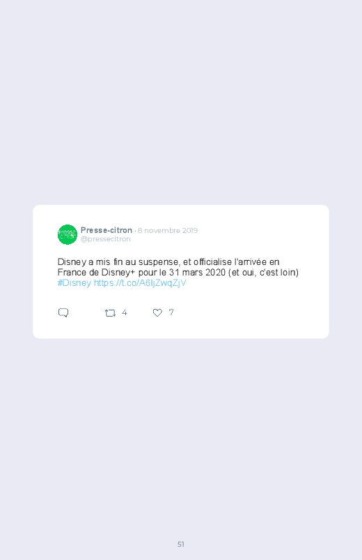 La plateforme tant attendue Disney + cesse de faire durer le suspens et a enfin annoncé sa date de sortie en France ! Découvrez l'univers de Disney, Marvel, Star Wars et bien d'autres encore dès le 31 mars en streaming depuis chez vous. De quoi ravir les fans et des films concernés et raviver l'âme d'enfant chez chacun de nous ! Sauvegardez vos tweets grâce au livre Twitter.