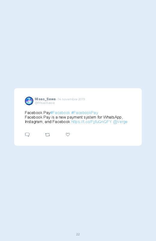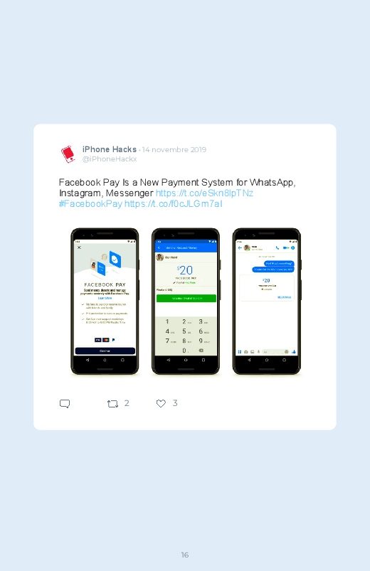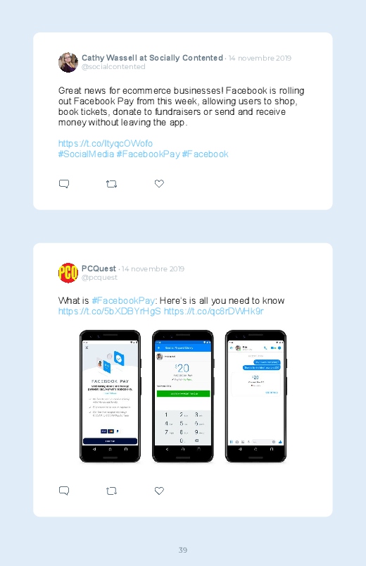 Facebook lance Facebook Pay, un nouveau moyen de paiement pour permettre des paiements sécurisés sur les plateformes Facebook, Messenger, Instagram et WhatsApp ! Une nouveauté majeure qui engagera le déploiement des fonctionnalités e-commerce sur ces réseaux sociaux. Sauvegardez votre vie digitale et imprimez votre livre Twitter !