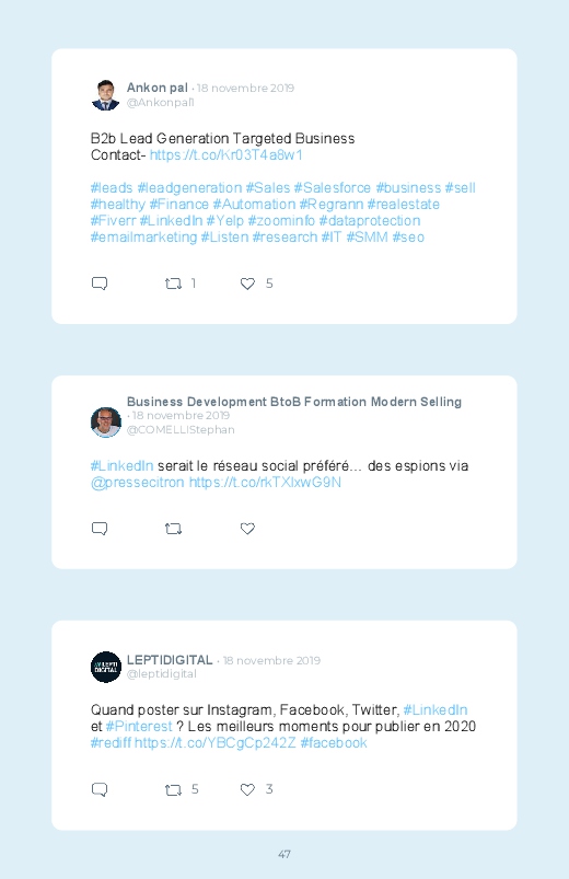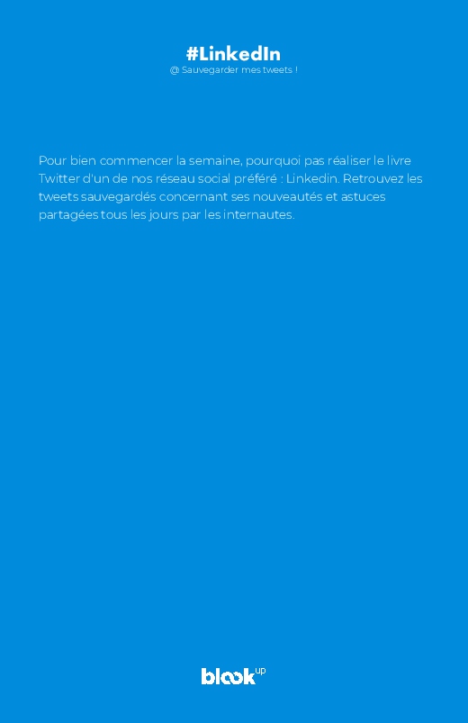 Pour bien commencer la semaine, pourquoi pas réaliser le livre Twitter d'un de nos réseau social préféré : Linkedin. Retrouvez les tweets sauvegardés concernant ses nouveautés et astuces partagées tous les jours par les internautes.