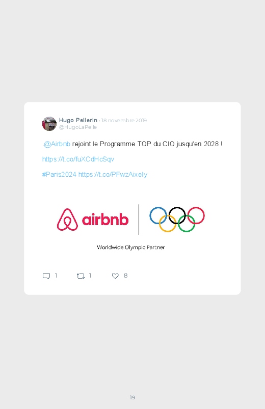 La plateforme communautaire de location de logement Airbnb annonce son partenariat avec le Comité International Olympique (CIO) jusqu’en 2028. Préparez l’événement #paris2024 grâce au livre Twitter !
