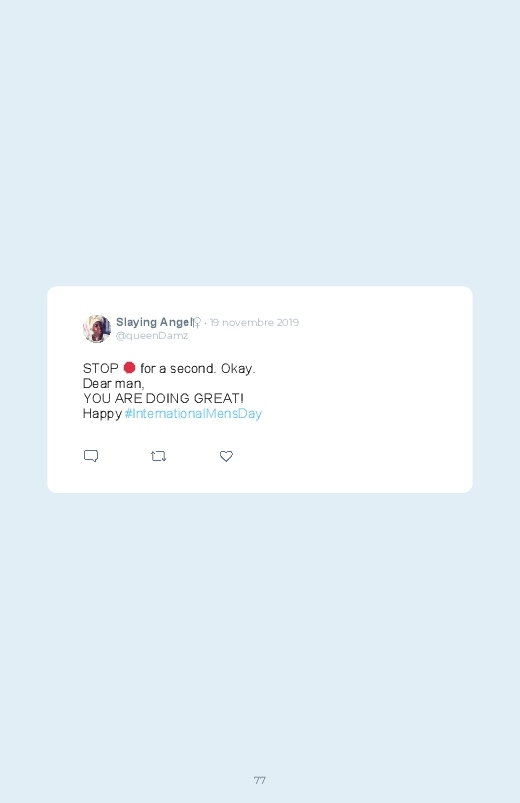 Bonne journée internationale de l'homme ! SAuvegardez les tweets dans un livre Twitter de cette journée spéciale masculine !