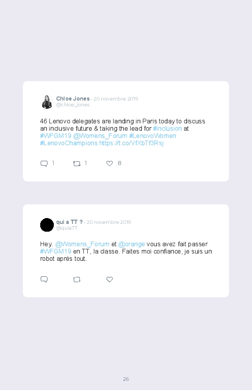 Chaque année se tient à Paris le Women's Forum, une conférance abordant la place des femmes dans l'économie et la société, mais aussi à l’ère du numérique, dans les nouvelles technologies ou l’intelligence artificielle. Sauvegardez les tweets de cet événement dans un livre Twitter !