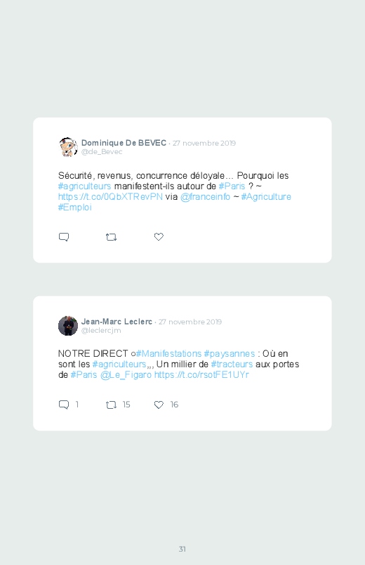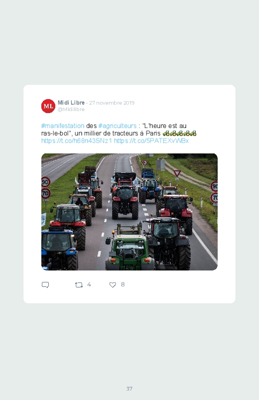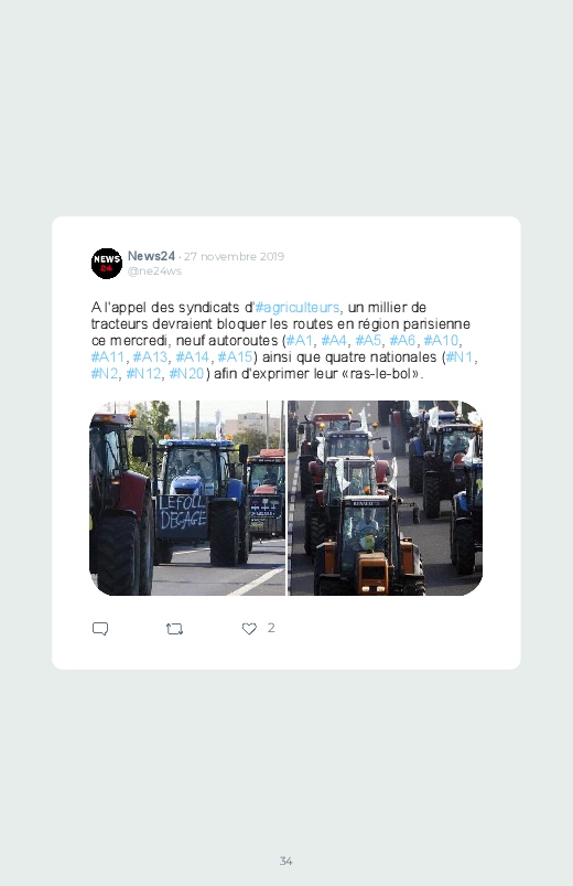 Sauvegardez l'actualité du jour dans un livre Twitter ! Aujourd'hui les agriculteurs sont en colère et manifestent avec leur tracteurs sur les routes de Paris. Plus d’un millier d’agriculteurs sont mobilisés pour l'opération et bloquent la ville à coup de revendication !
