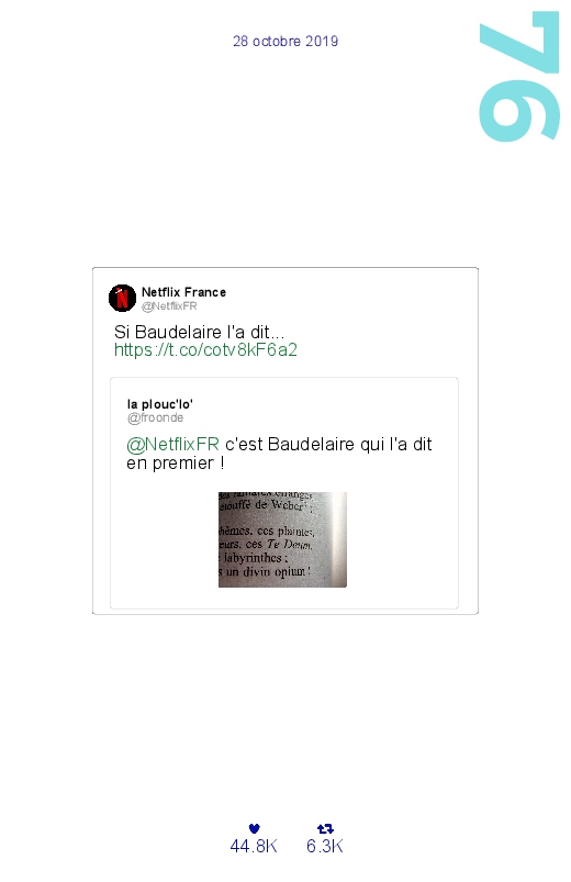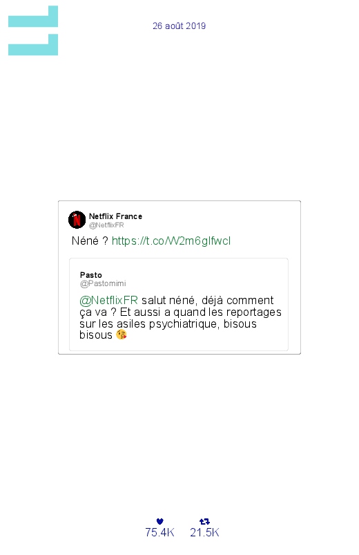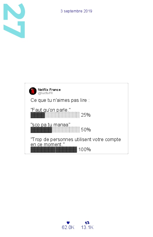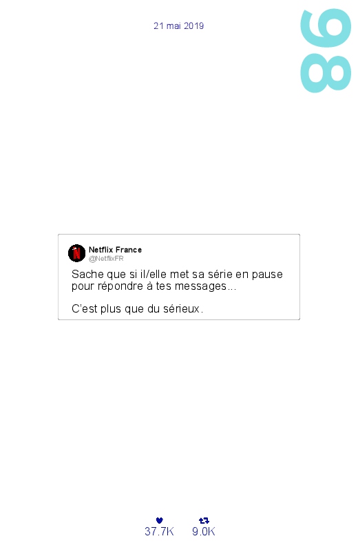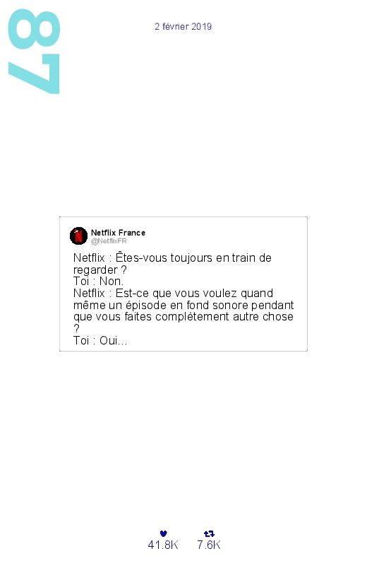 Netflix France made the blook of their their Twitter account ! Support their creativity by buying their blook or create your own now on BlookUp!
