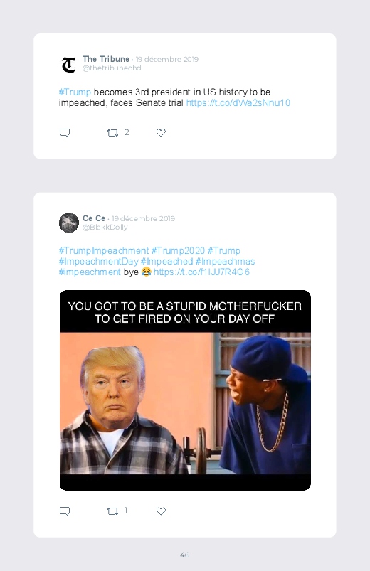 C'est le jour du résultat concernant l’impeachment de Donald Trump, le président des Etats-Unis. Un jour décisif et historique pour la scène politique américaine. Retrouvez les réactions dans ce livre Twitter !