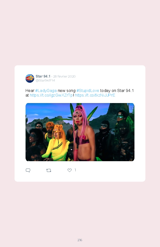 Le nouveau single #StupidLove de #LadyGaga vient de sortir ! Jetez un œil à notre #BlookDuJour qui recense les derniers tweets du hashtag #StupidLove ! ;)