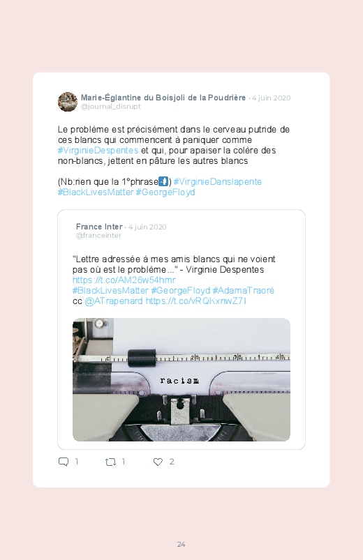 Une lettre qui a fait son effet, celle de #VirginieDespentes ! Le #BlookDuJour regroupe les meilleurs tweets à ce sujet. Pensez à imprimer votre Instagram et votre Facebook également