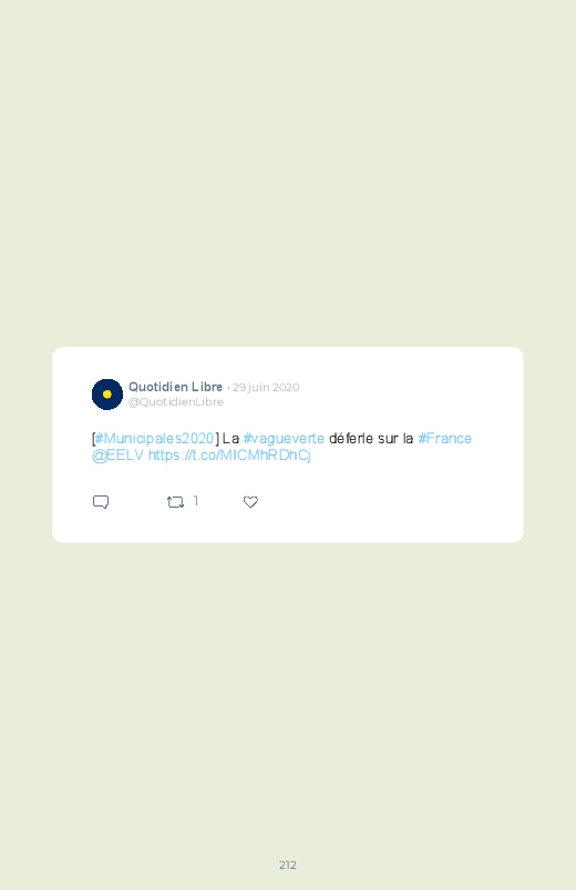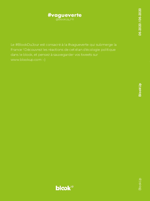 Le #BlookDuJour est consacré à la #vagueverte qui submerge la France ! Découvrez les réactions de cet élan d'écologie politique dans le blook, et pensez à sauvegarder vos tweets sur www.blookup.com :-)