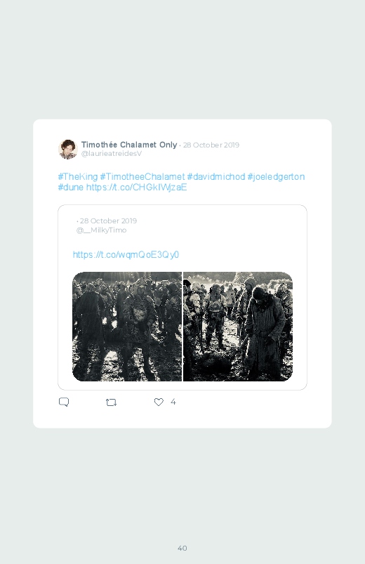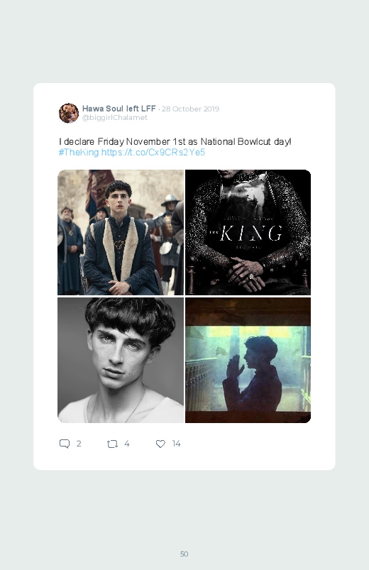 Base on Shakspeare's play, here is the synopsis for the new The King movie "Hal, wayward prince and heir to the English throne, is crowned King Henry V after his tyrannical father dies. Now the young king must navigate palace politics, the war his father left behind, and the emotional strings of his past life."If you enjoy this kind of story, Make sure to save the tweets, reactions of this hashtag blook and to save it into a beautiful Twitter Book!