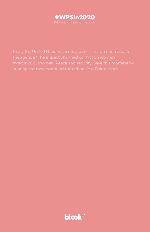 Today the United Nations security council has an open debate! The agenda? The impact of armed conflict on women #WPSin2020 Women, Peace and security! Save this moment by printing the tweets around the debate in a Twitter book!