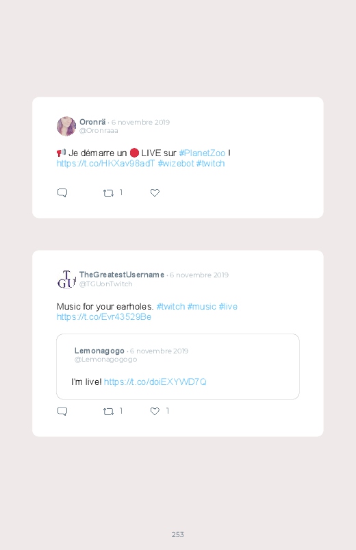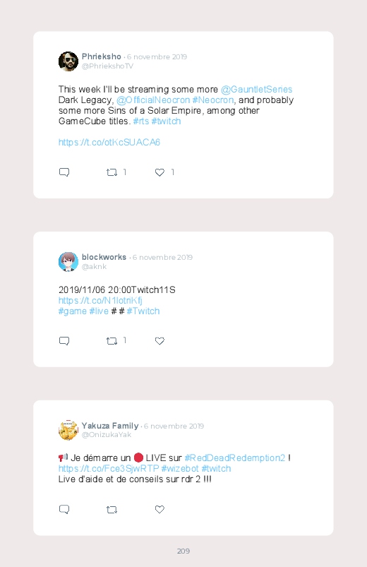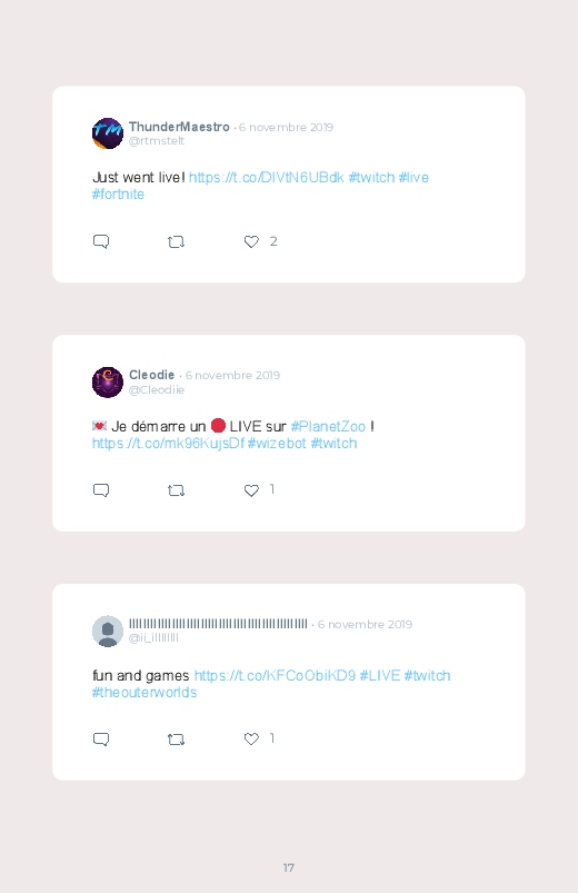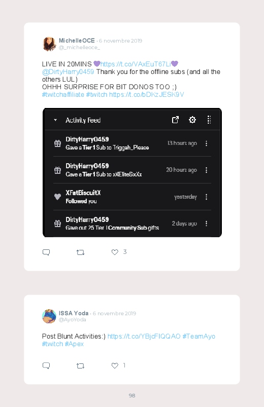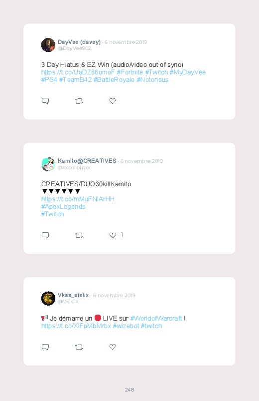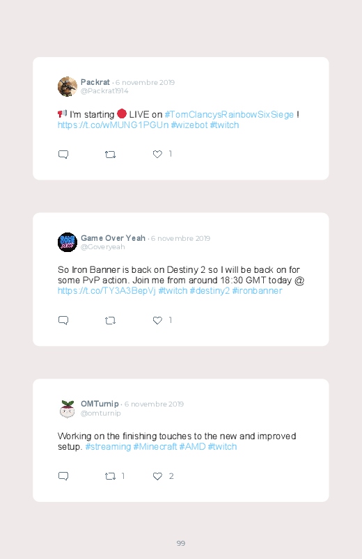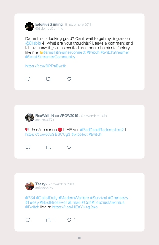 Twitch a gaming plateform hosts an important group of gaming in the e-sports business! Some leave and some stay! Discover all that is happening around it by printing this book of reaction tweets about the website!