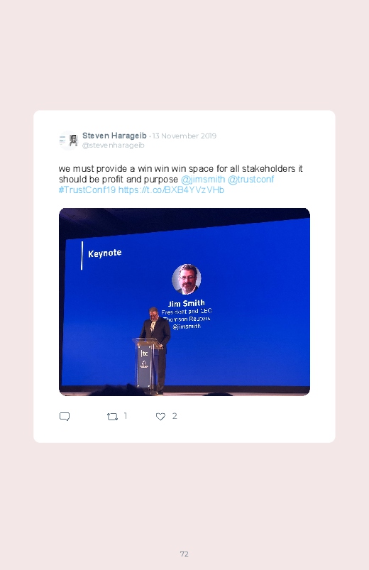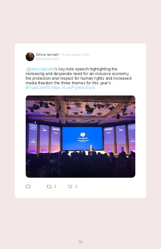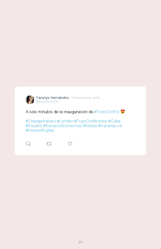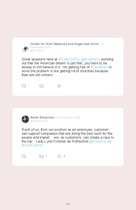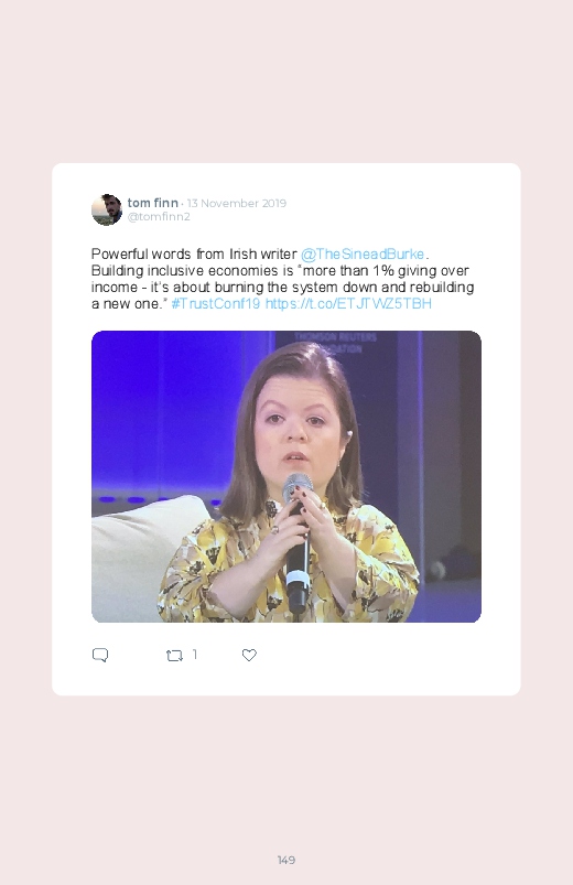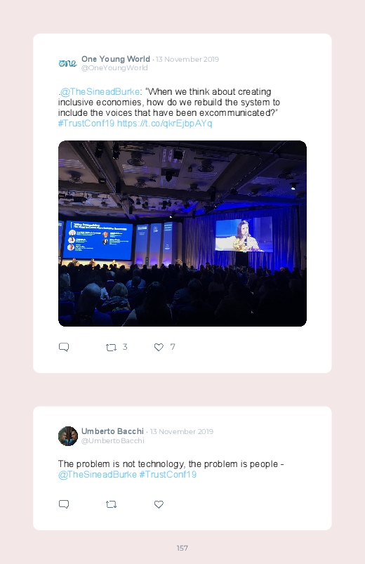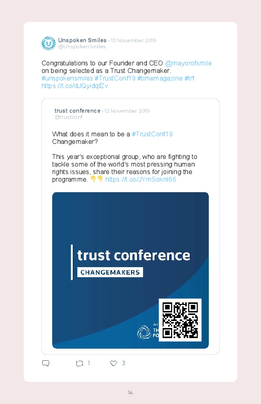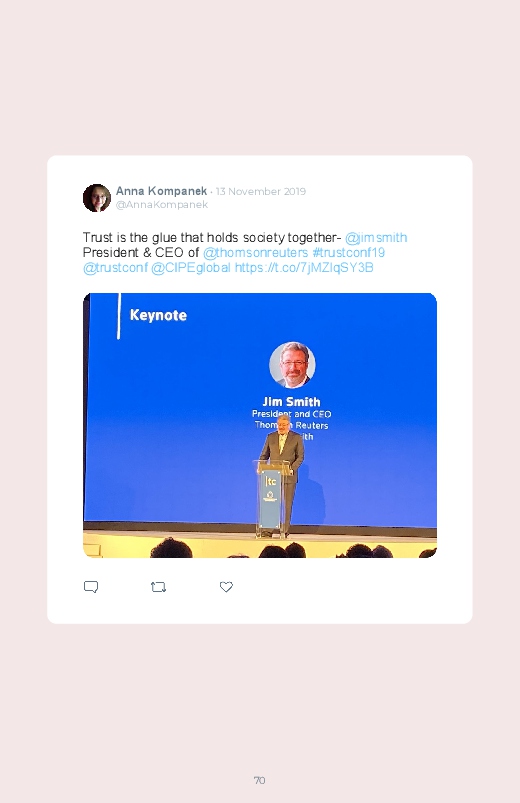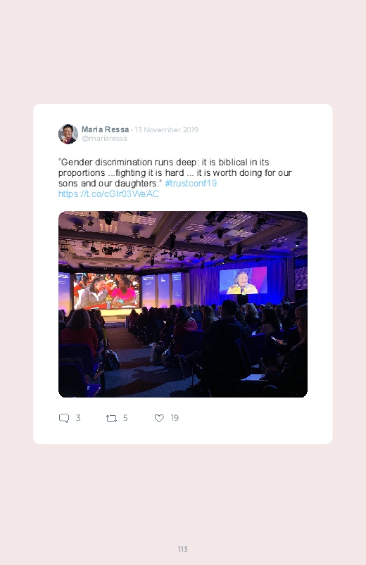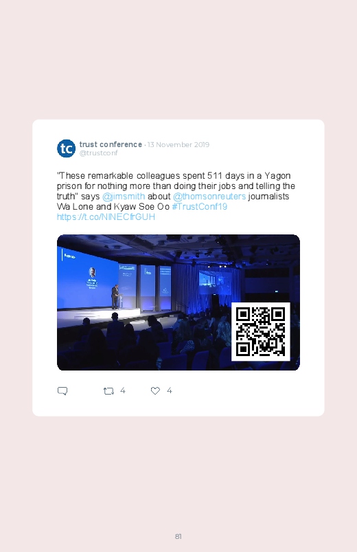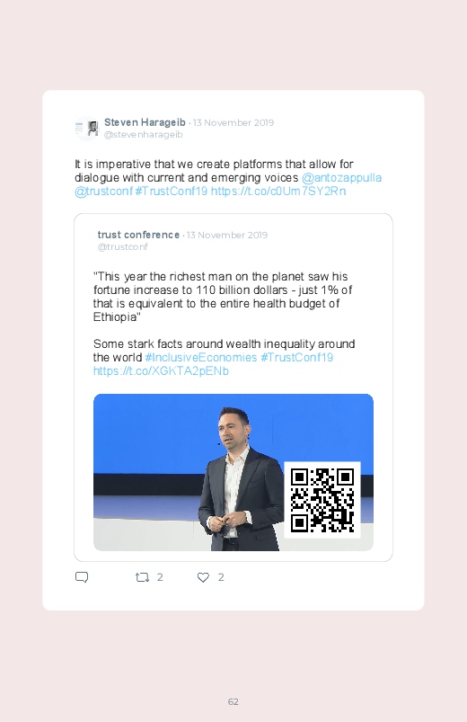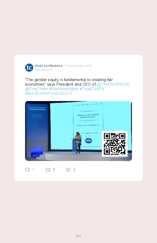 Save the tweets around the #Trust conf19 event in a Twitter book ! You also have the possibility to Print it afterward "Trust Conference is the Thomson Reuters Foundation’s flagship annual event and a world-leading human rights forum. Held in the heart of London each year, the conference brings together some 600 delegates from diverse sectors representing more than 60 countries."