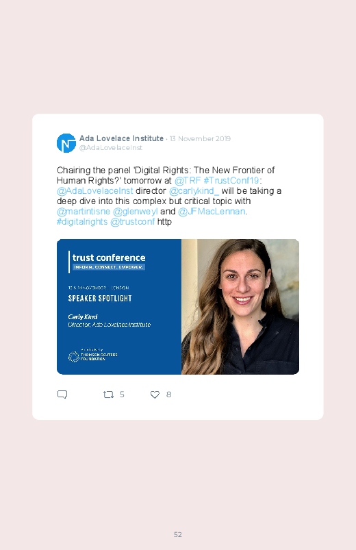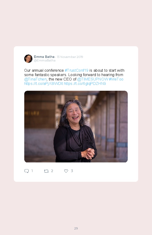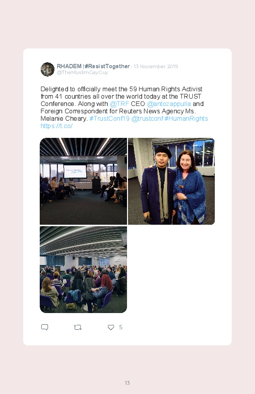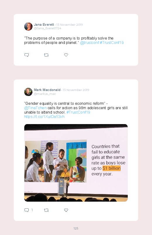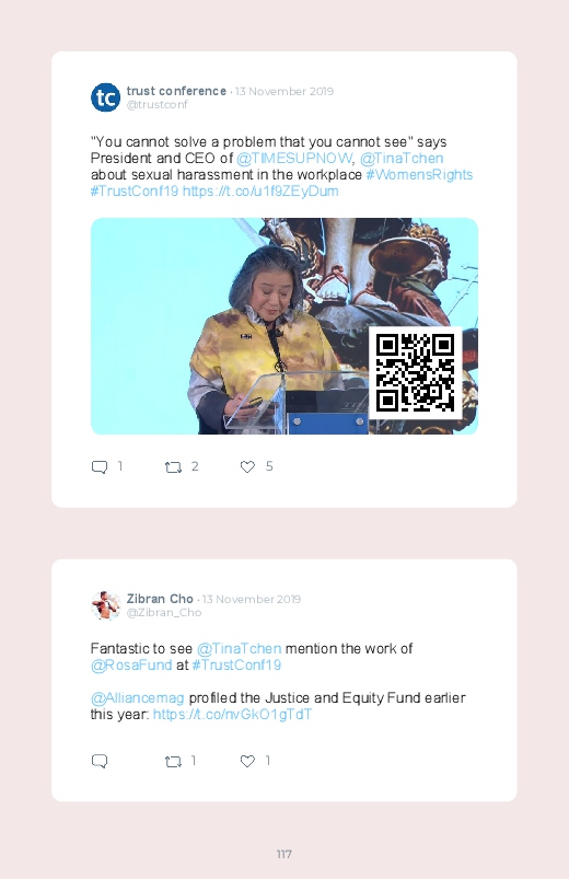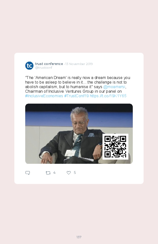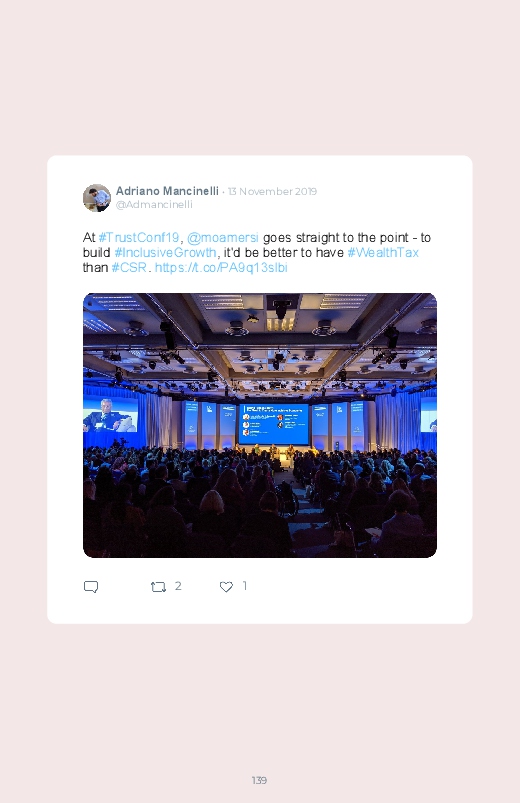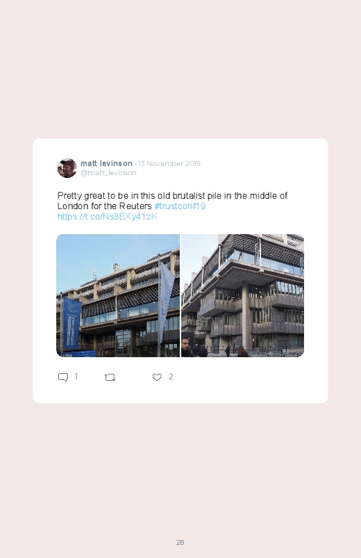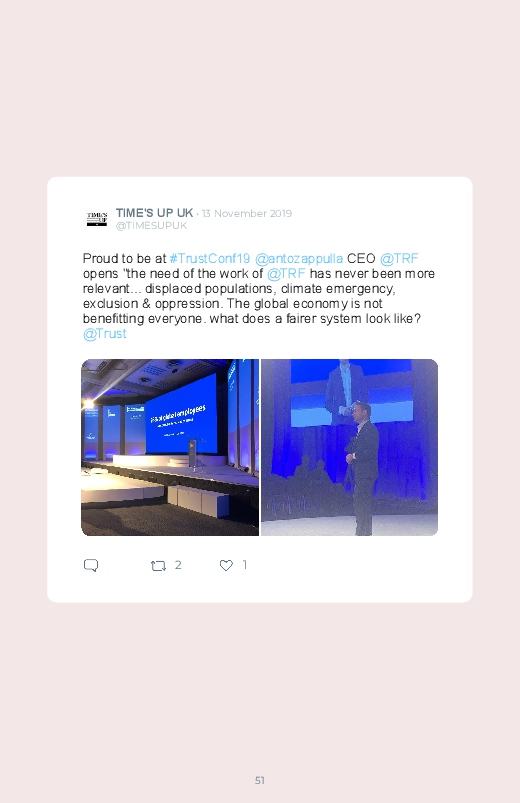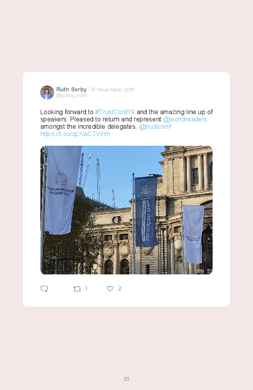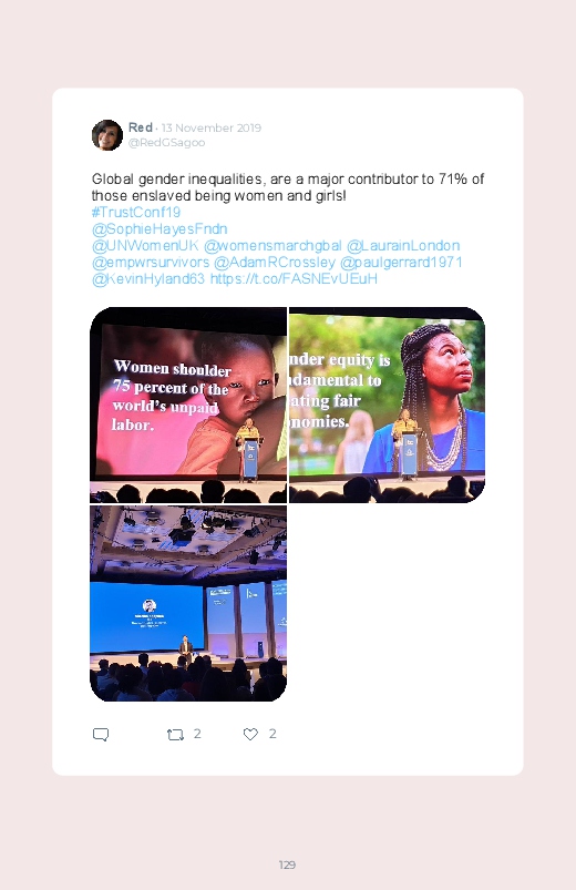 Save the tweets around the #Trust conf19 event in a Twitter book ! You also have the possibility to Print it afterward "Trust Conference is the Thomson Reuters Foundation’s flagship annual event and a world-leading human rights forum. Held in the heart of London each year, the conference brings together some 600 delegates from diverse sectors representing more than 60 countries."