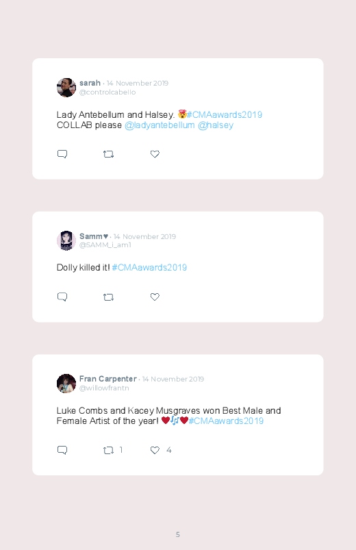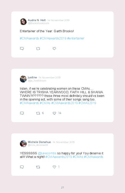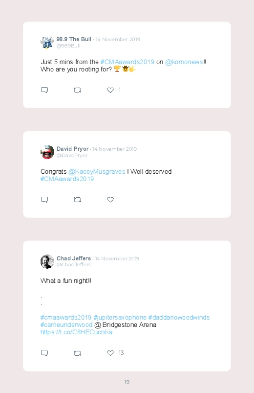 The 53rd Annual Country Music Association Awards happened on the 13th of November. Discover the different tweets and reactions by saving and printing them in a Twitter book!