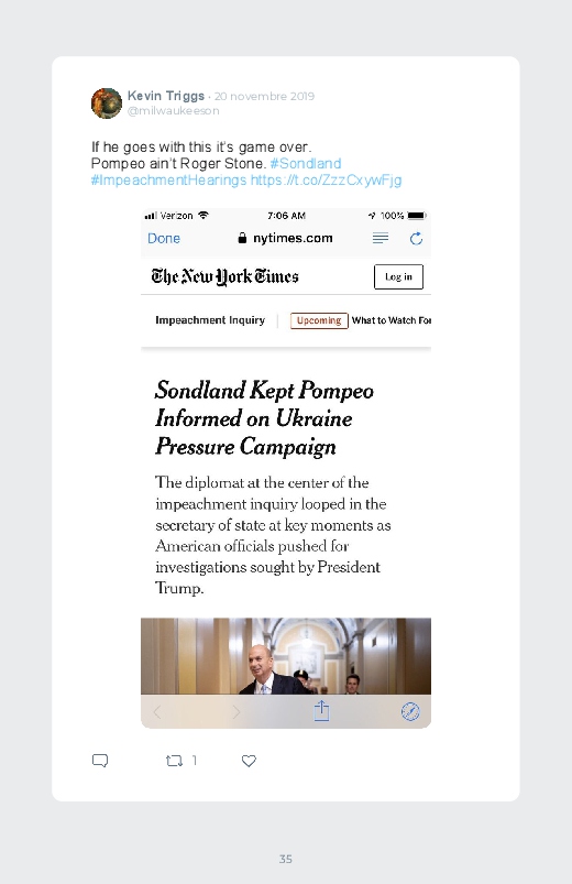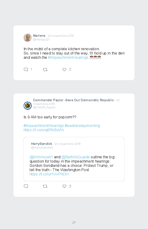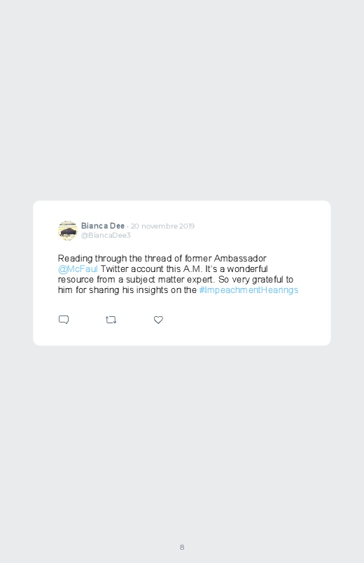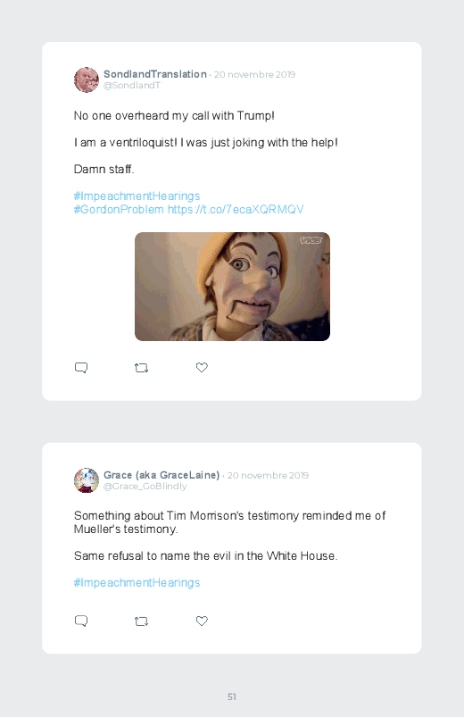 The impeachment hearings against the president of the United-States continues and takes on great importance, especially because of the many testimonies made in recent days against the President! Follow the news by saving its tweets in a Twitter book!