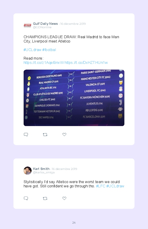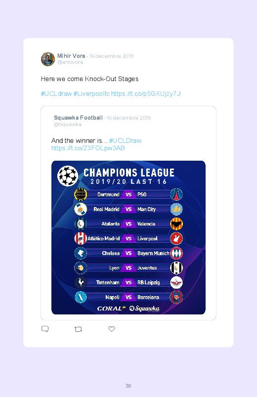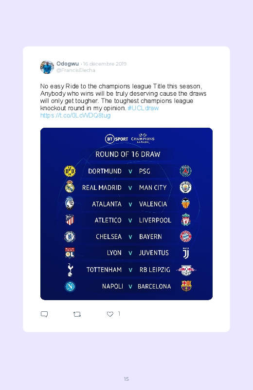 The 2019-2020 Champions League is the 65th edition of the European Cup of Champions Clubs. It contrasts the best European clubs that have distinguished themselves in their respective championships the previous season. Follow the progress of the event and the reactions in this Twitter book.