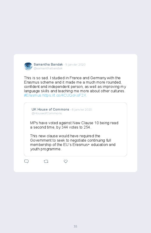 As the debate on the modalities of Brexit resumed this week in Westminster, the House’s twitter account relayed a vote in the evening on the famous exchange programme between European universities, which was set up in 1987. Follow the reactions of Internet users in this Twitter book!