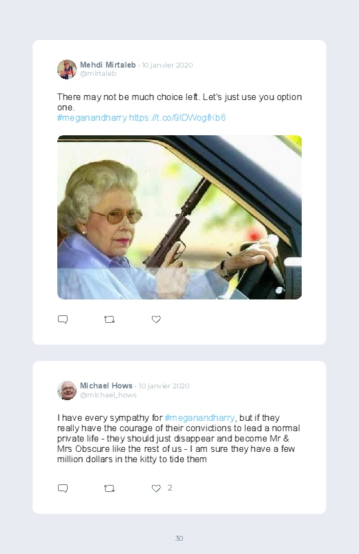 The Prince Harry and Meghan Markle announced on Wednesday that they would relinquish their leading role in the British Royal Family to take financial independence and settle for part of the year in North America. An announcement that shocked the whole UK very attached to its royal family, discover their reactions in this Twitter book!